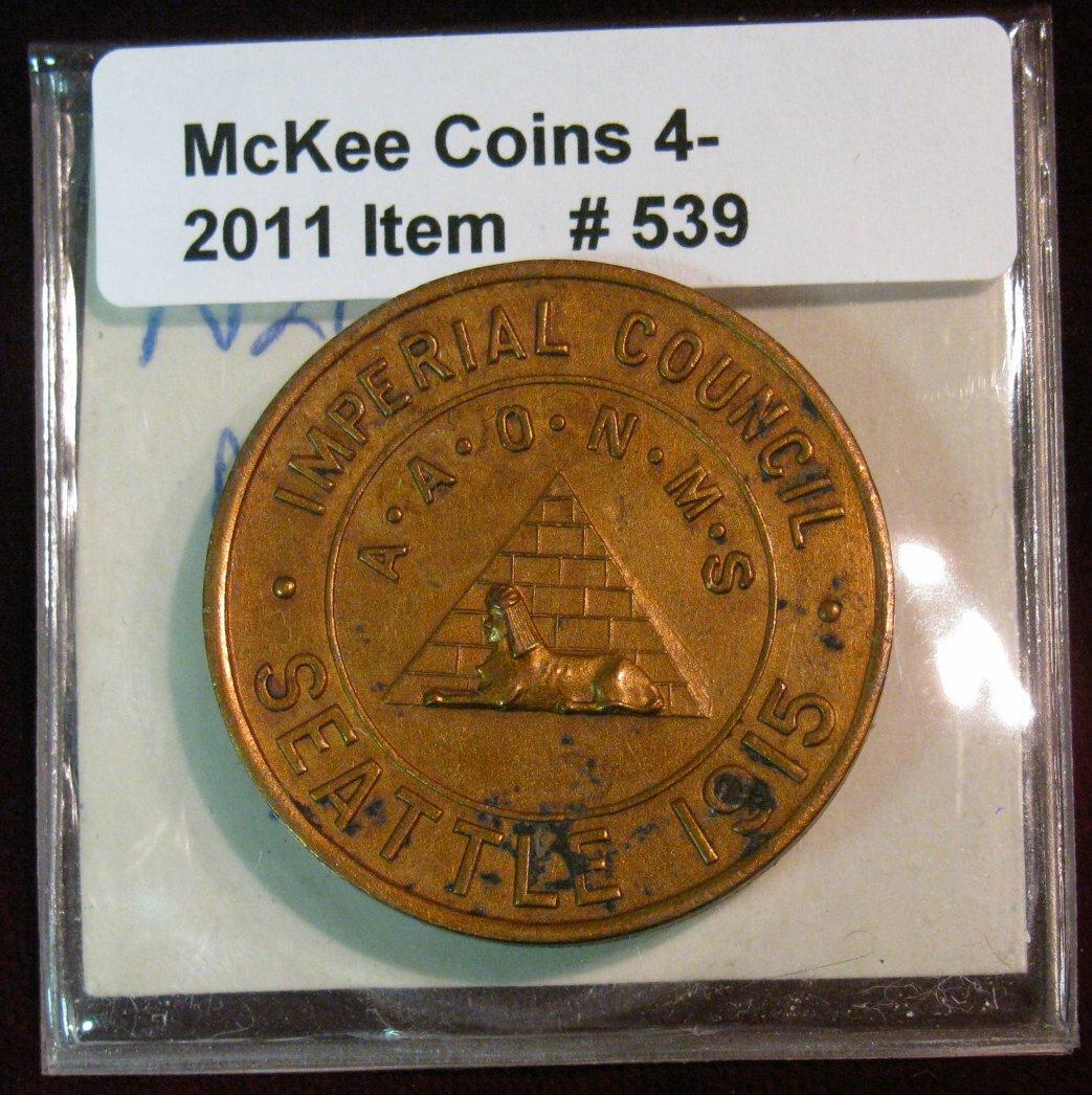 539. Seattle 1915 Imperial Council Medal. N2030. Norris Token's duplicate. Bronze.