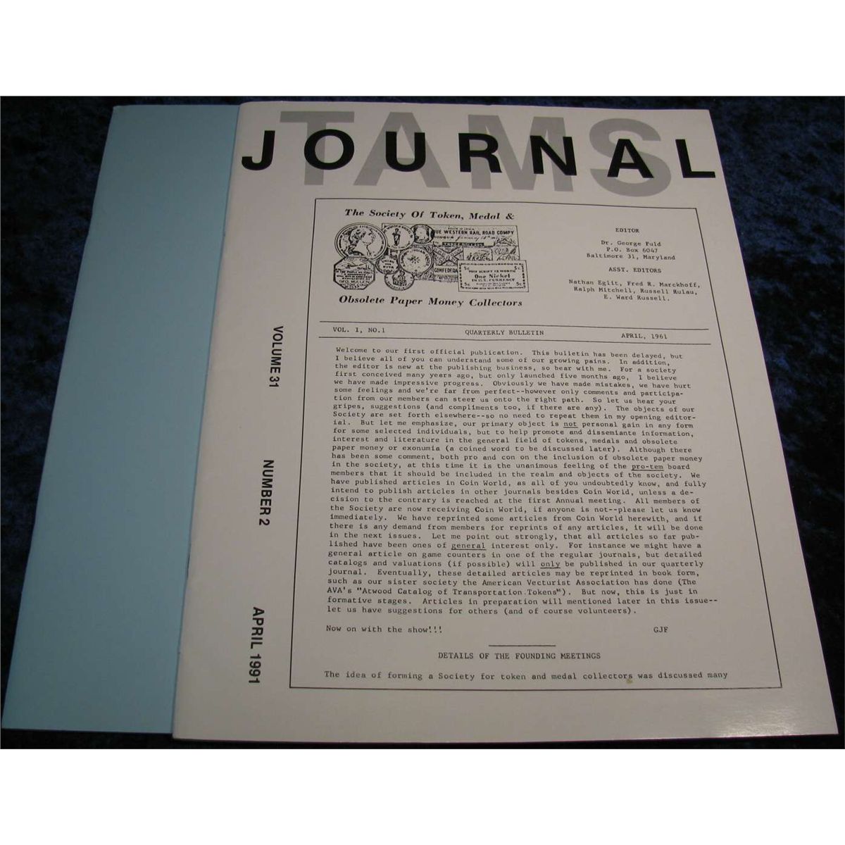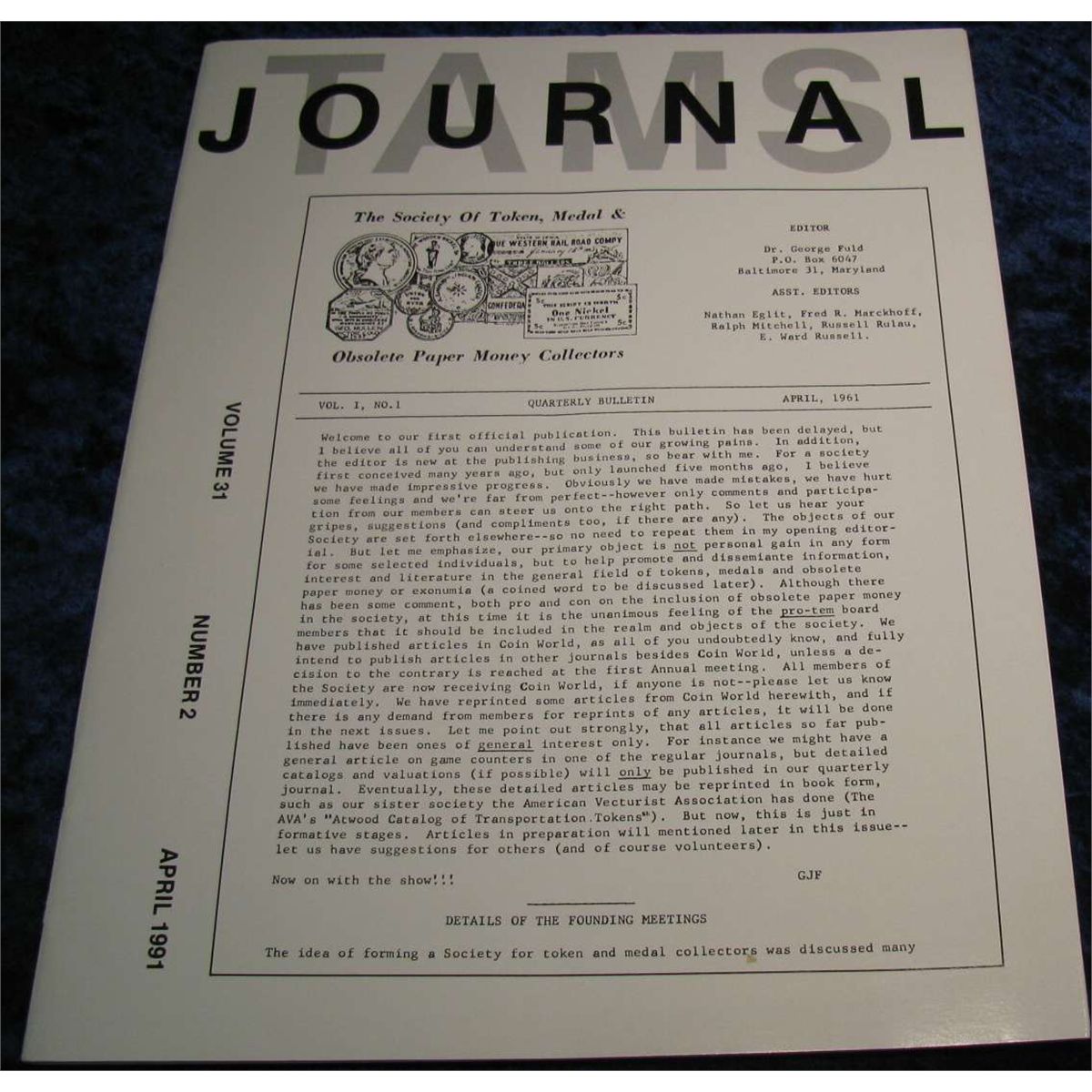 539. Volume 31 Number 2 April 1991 "Tams Journal" & "MITAD Tokens of Latin America" ol. 31 Number 1 (2) Feb. 1991. Both Mint.