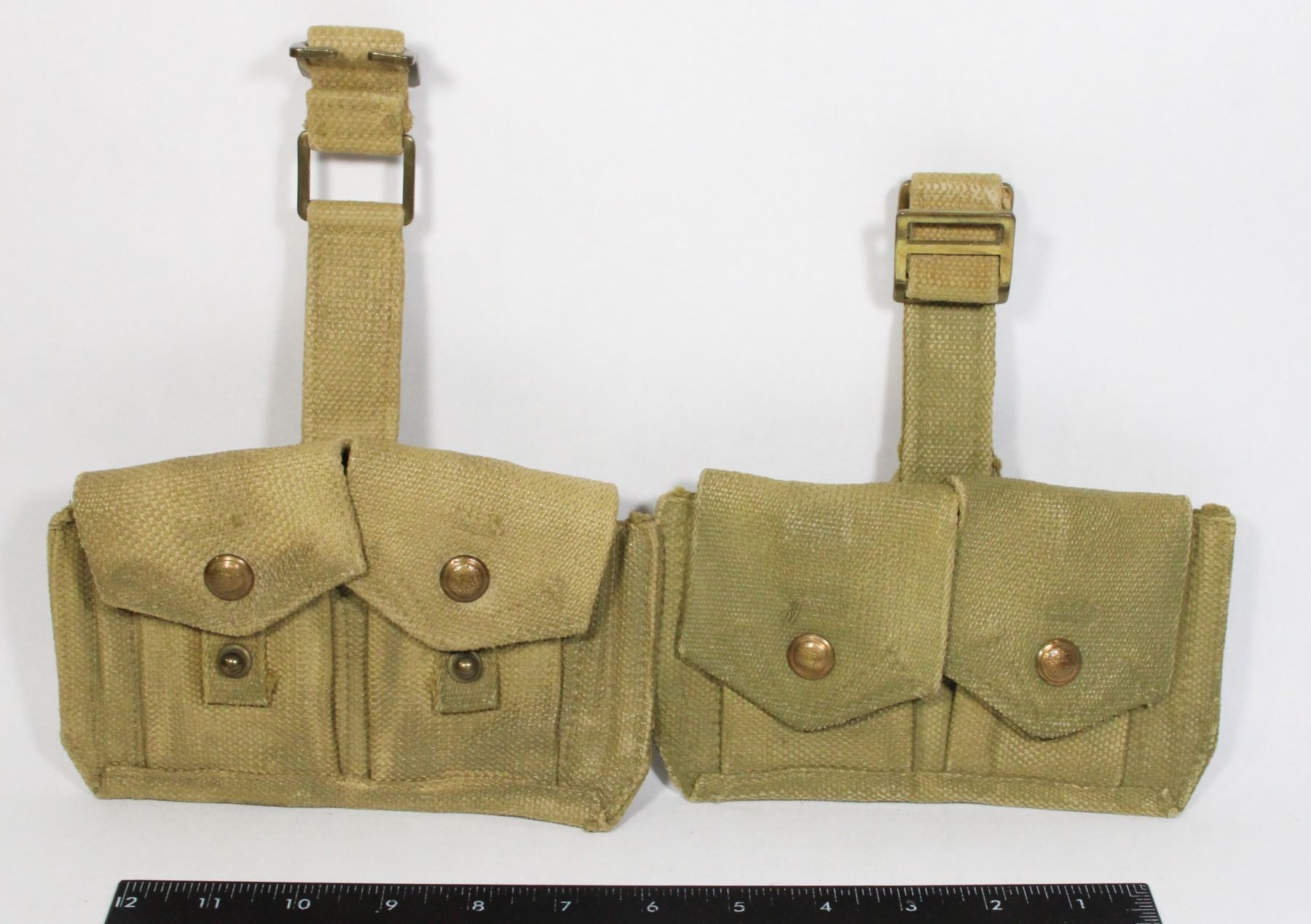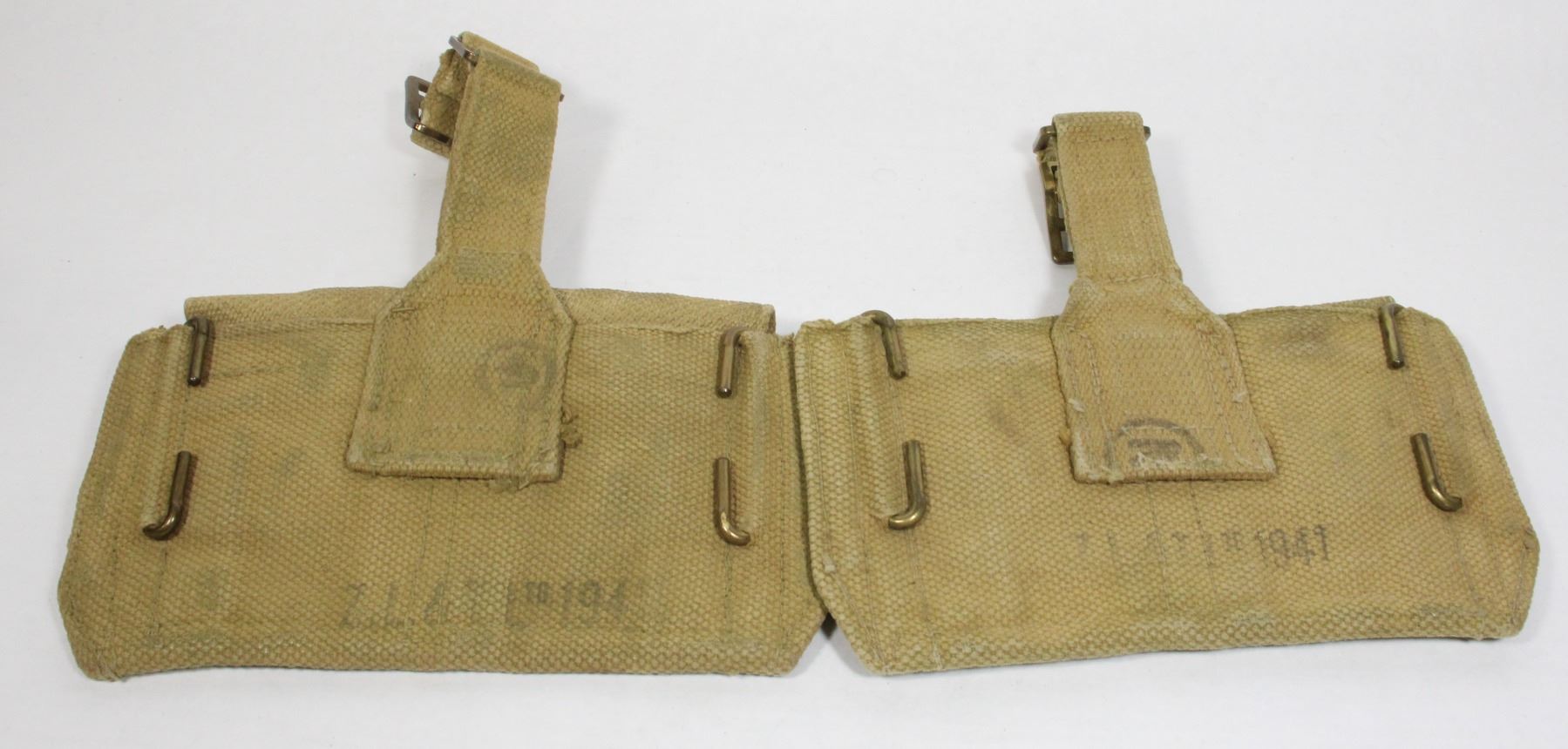 Z.L. & T. LTD 1941 WITH C-> C BROAD ARROW MARKING P37 PAIR OF KHAKI AMMUNITION POUCHES ENFIELD RIFLE . WW2 WORLD WAR TWO CANADIAN EQUIPTMENT ALLIED MILITARY FORCES