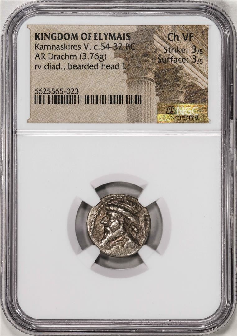 54-32 BC Kingdom of Elymais Kamnaskires AR Drachm Ancient Coin NGC Ch VF