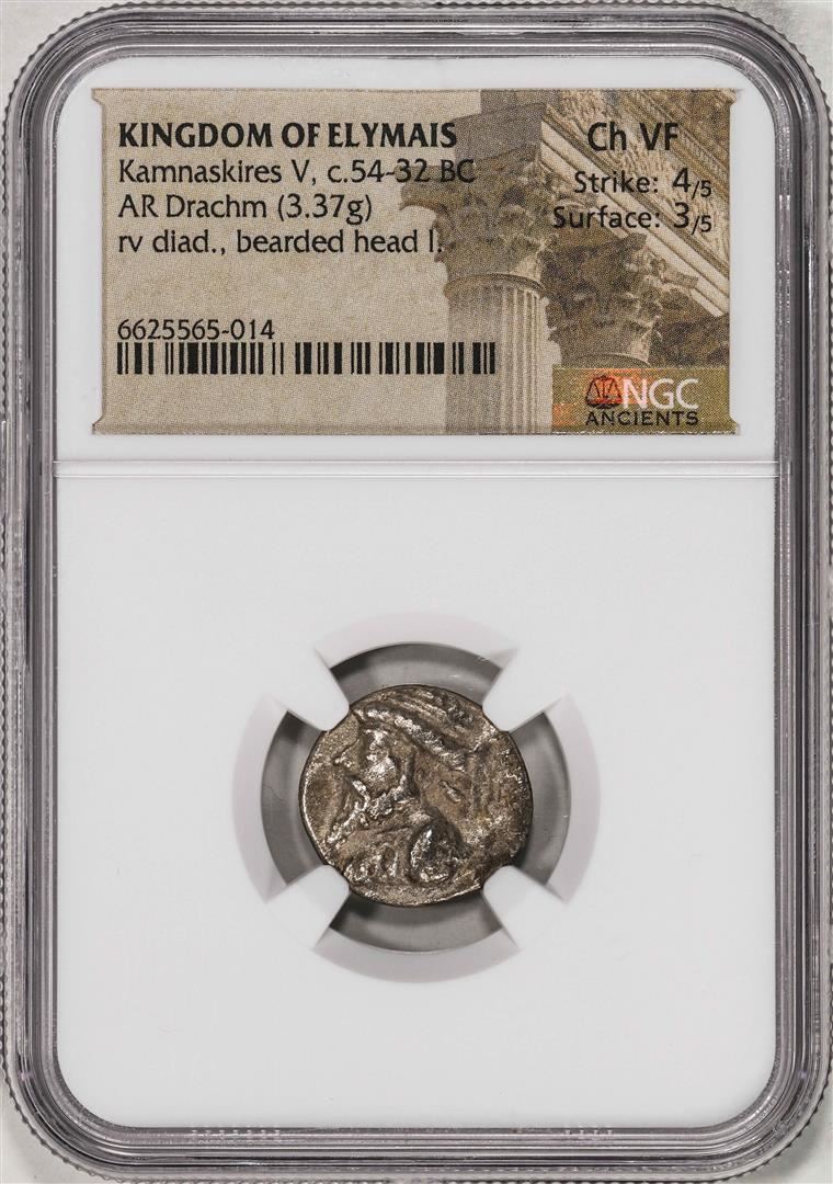 54-32 BC Kingdom of Elymais Kamnaskires AR Drachm Ancient Coin NGC Ch VF