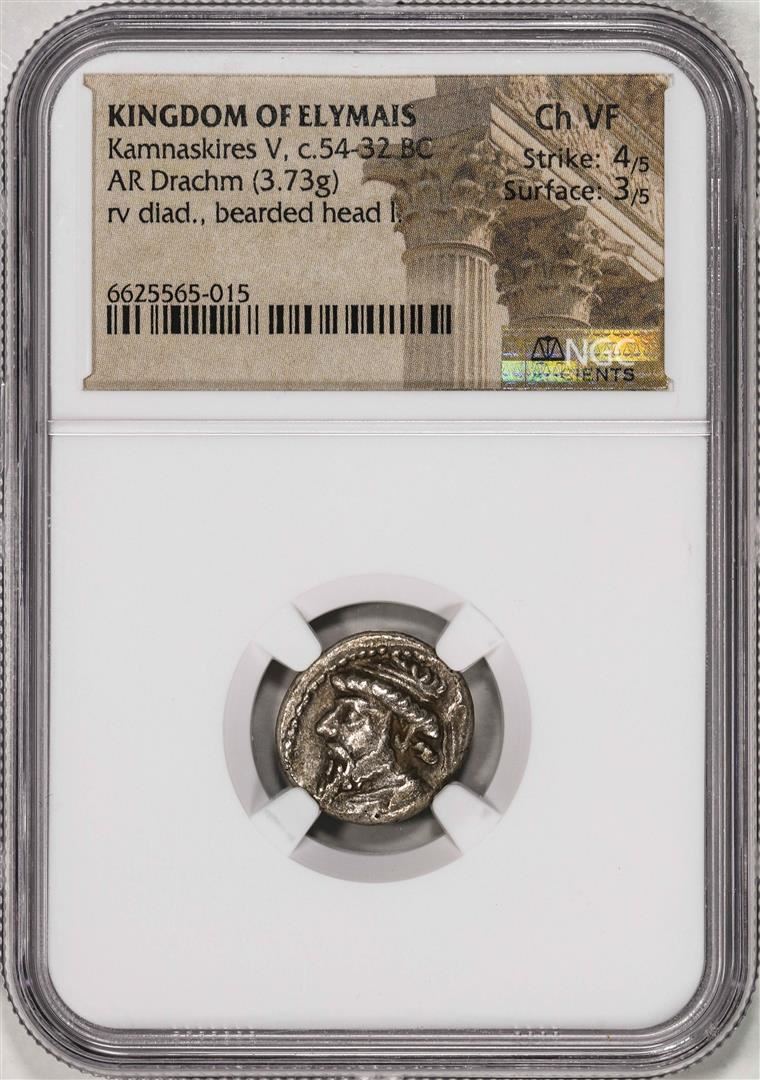 54-32 BC Kingdom of Elymais Kamnaskires AR Drachm Ancient Coin NGC Ch VF