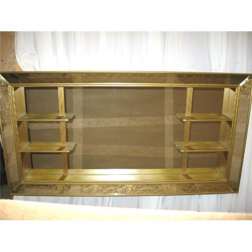 We have for sale a fantastic shadow box. The shadow box is 54" long. It has 4 shelves and a mirror backing. It has an outer trim that is mirrored with gold in the mirror. These are hard to find, especially in this condition. This has a date on the back of 1960. This shadow box is one out of 2. We have another one that is a mate to this one. The condition is great. This weighs 23 pounds and measures 28.25 x 54 x 5.