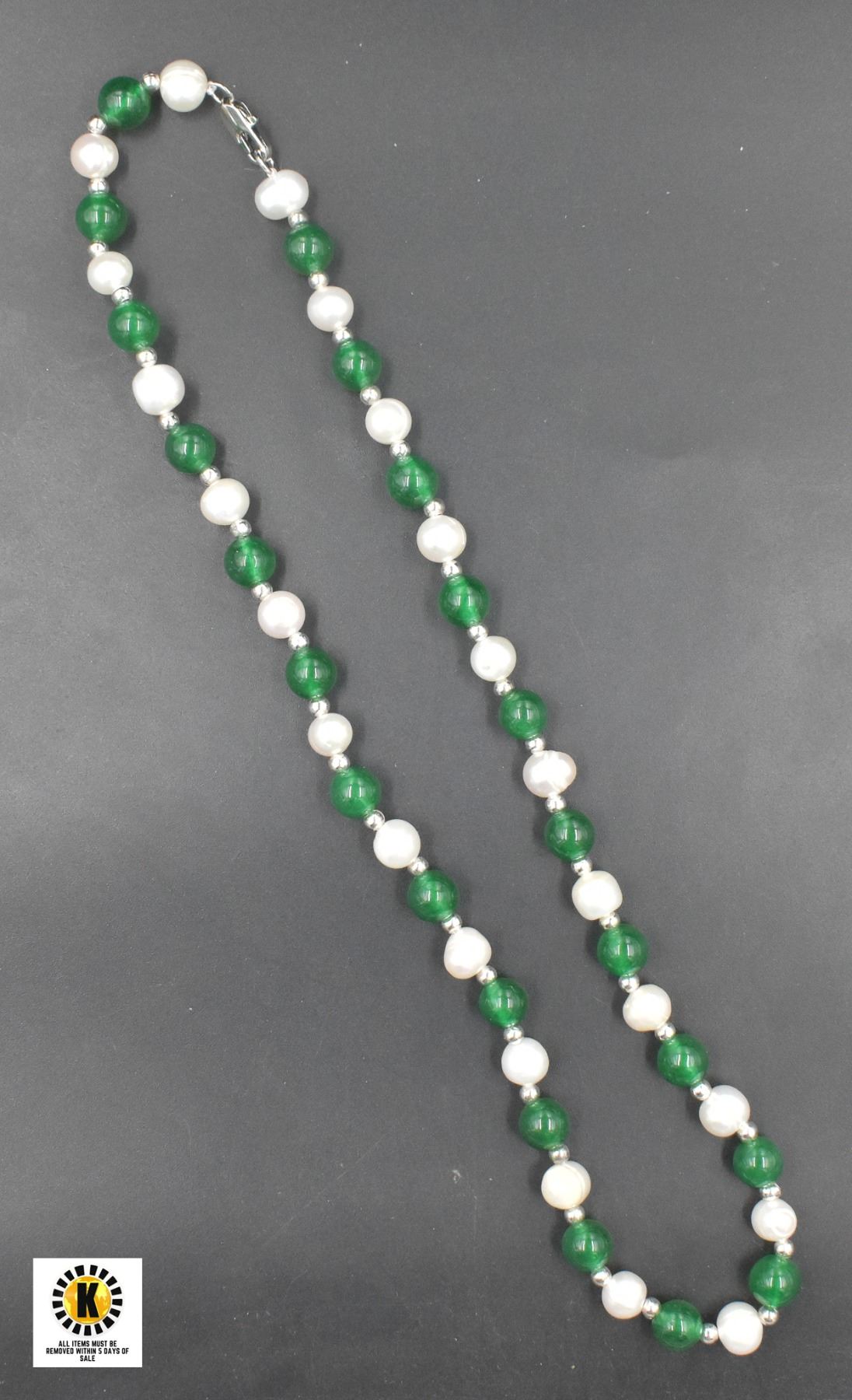 #54-NATURAL FRESH WATER , GREEN EMERALD NECKLACE