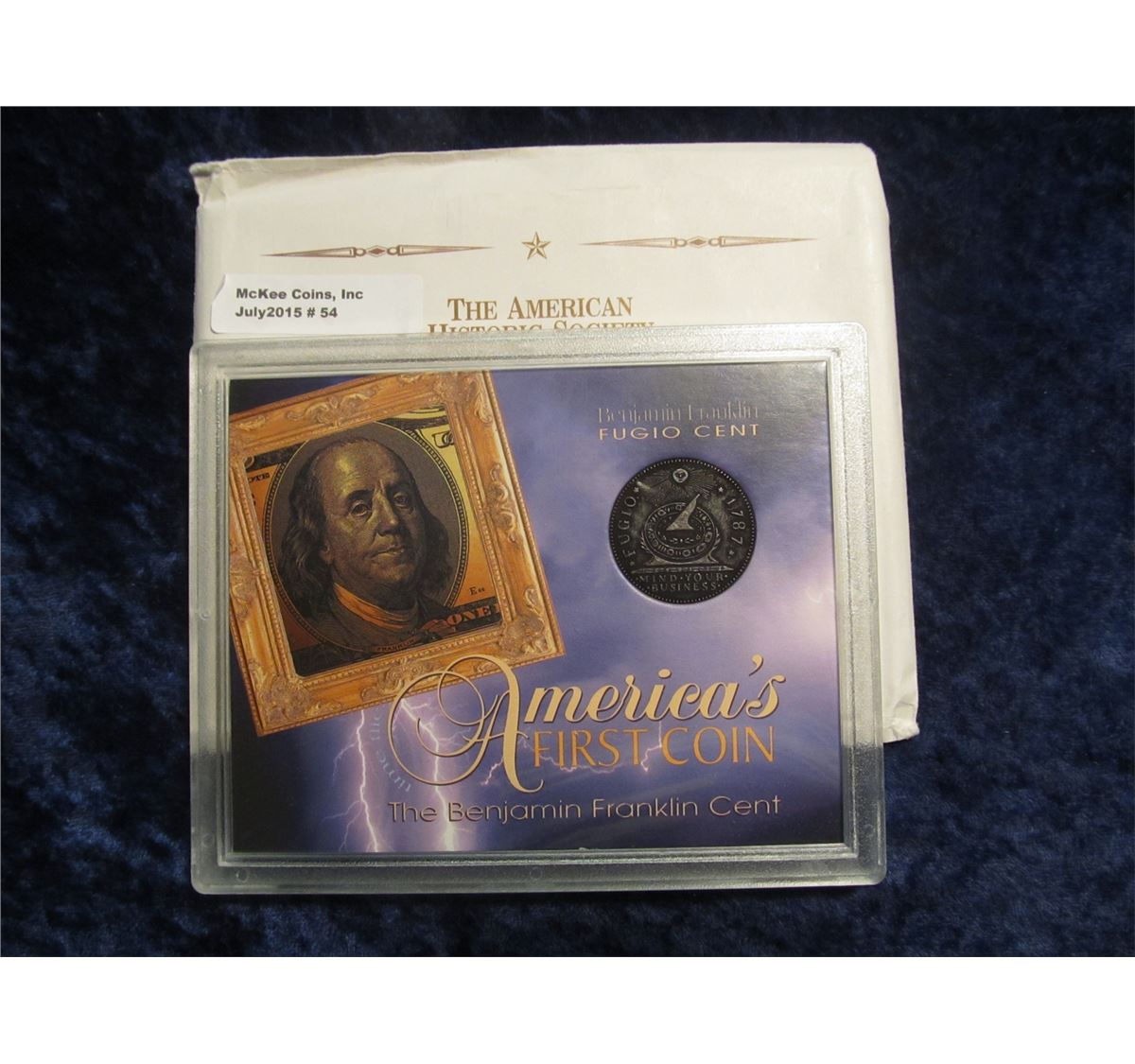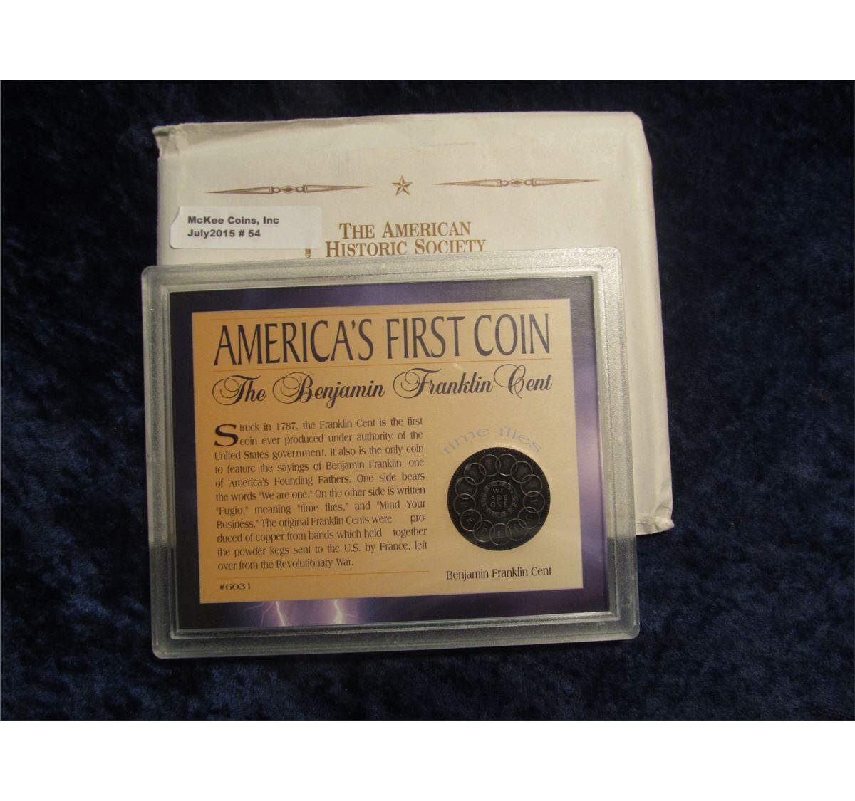 54. Plastic Case stating "Benjamin Franklin Fugio Cent America's First Coin The Benjamin Franklin Cent". Marked "Replica".