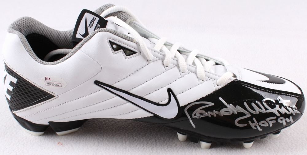Nike Cleat, Size 12 (New / Unused). Hand-signed and inscribed in silver paint pen by Randy White (HOF). The autograph includes an official James Spence Authentication (JSA) hologram and matching COA for authenticity purposes. The signing of this item was witnessed by JSA.
