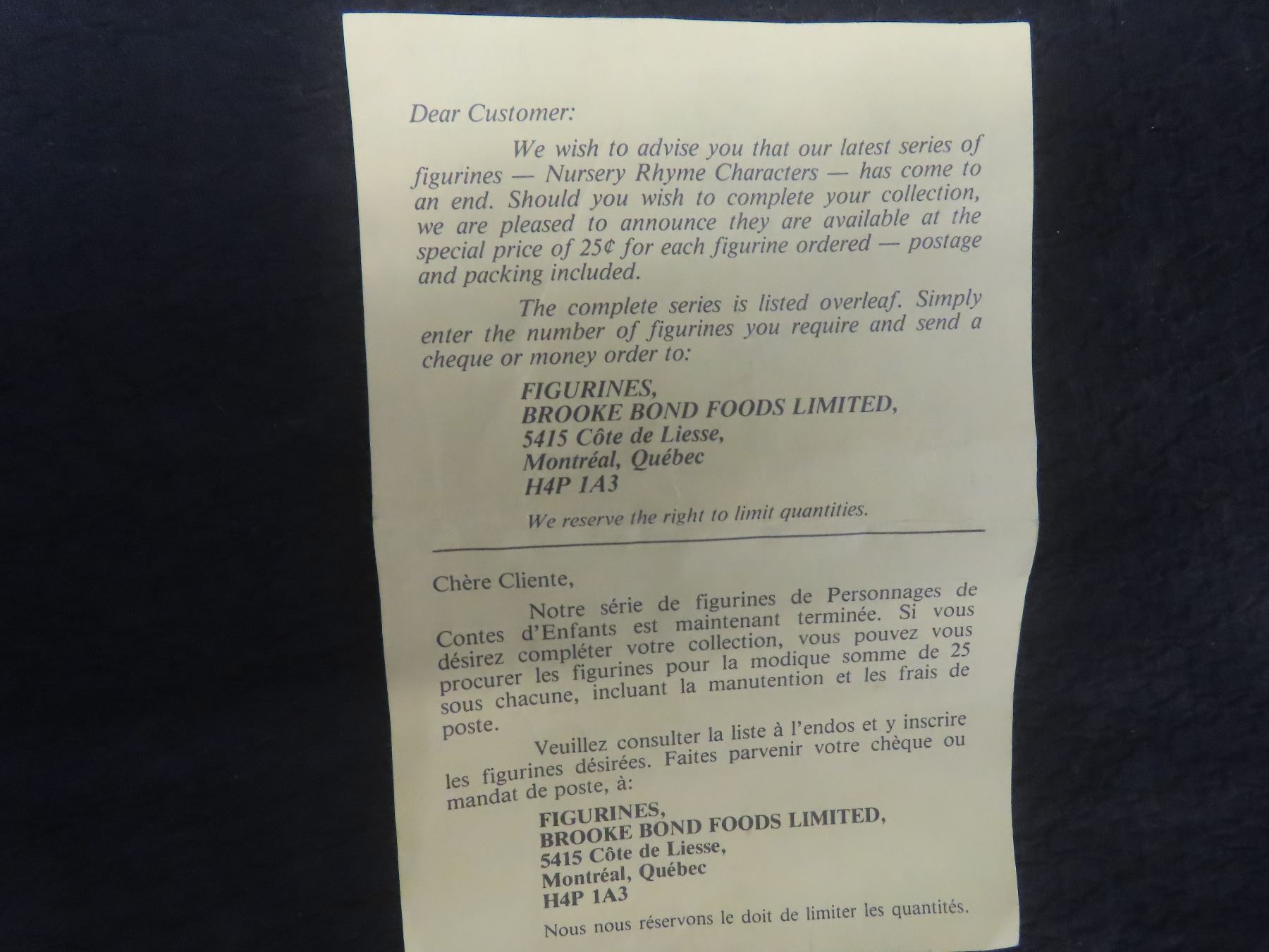 54 Red Rose Tea Figurines with Order Form for Nursery Rhyme Characters – No Chips