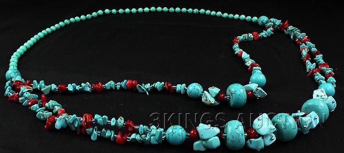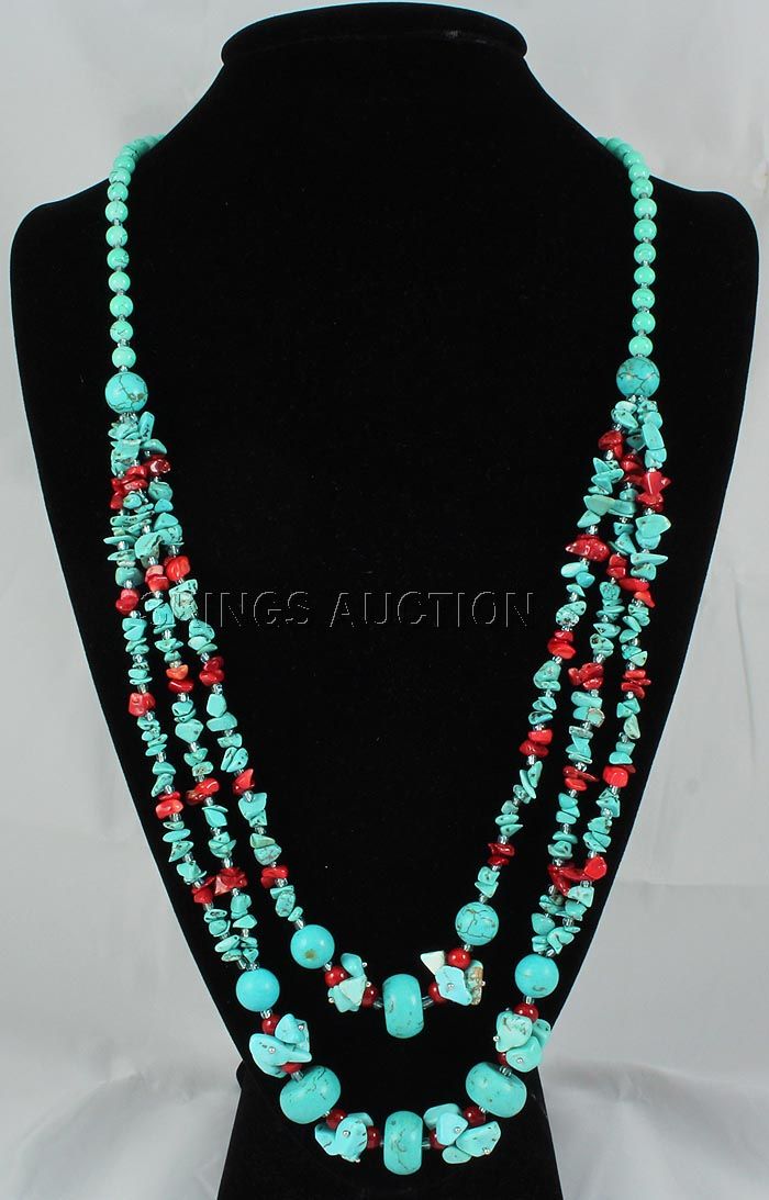 540.30CTW TURQUOISE & RED CORALS STATEMENT NECKLACE **|**|** 32 INCHES 3ROW DESIGN CHUNKY TURQUOISE & RED CORALS STATEMENT NECKLACE ; MSRP: $300