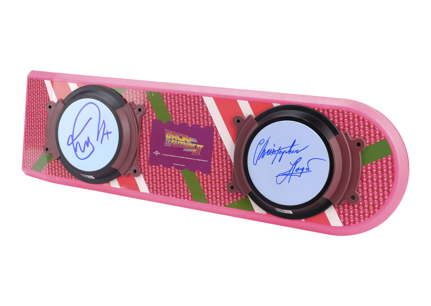 BACK TO THE FUTURE PART II (1989) - Michael J. Fox and Christopher Lloyd-Autographed Hoverboard Replica - A replica of Marty McFly's (Michael J. Fox) hoverboard from Robert Zemeckis' Back to the Future Part II autographed by Michael J. Fox and Christopher Lloyd. Fun Costumes released officially-licensed replicas of Marty's iconic hoverboard.