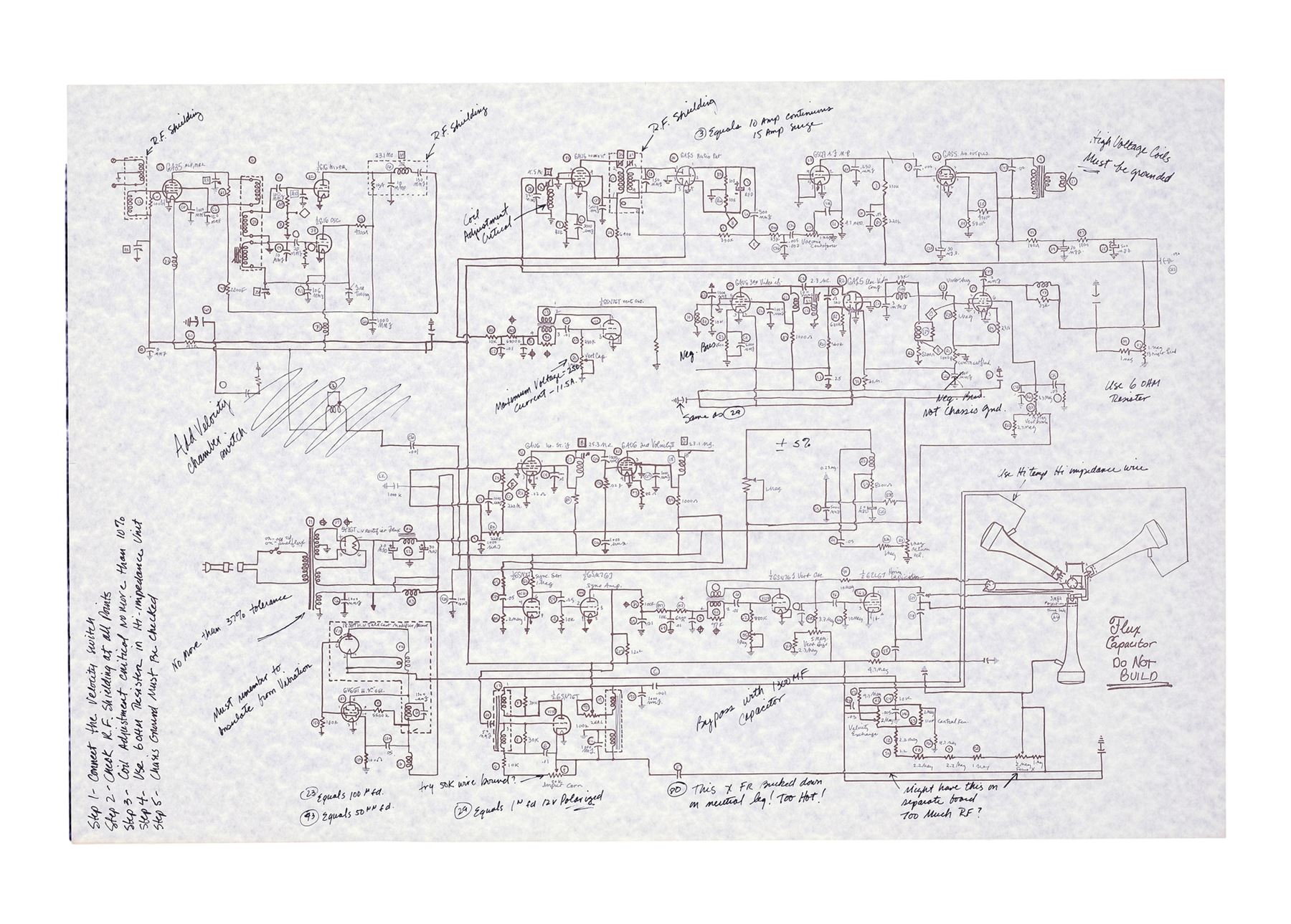 BACK TO THE FUTURE PART III (1990) - Printed Flux Capacitor Schematic - A printed schematic of the flux capacitor from Robert Zemeckis' Back to the Future Part III. Marty McFly (Michael J. Fox) and Doc Emmett Brown (Christopher Lloyd) found a schematic with repair instructions when they located the DeLorean time machine inside the Delgado gold mine. This early version of the diagram was ultimately unused and features a slightly different capacitor design than the one seen in the final cut.