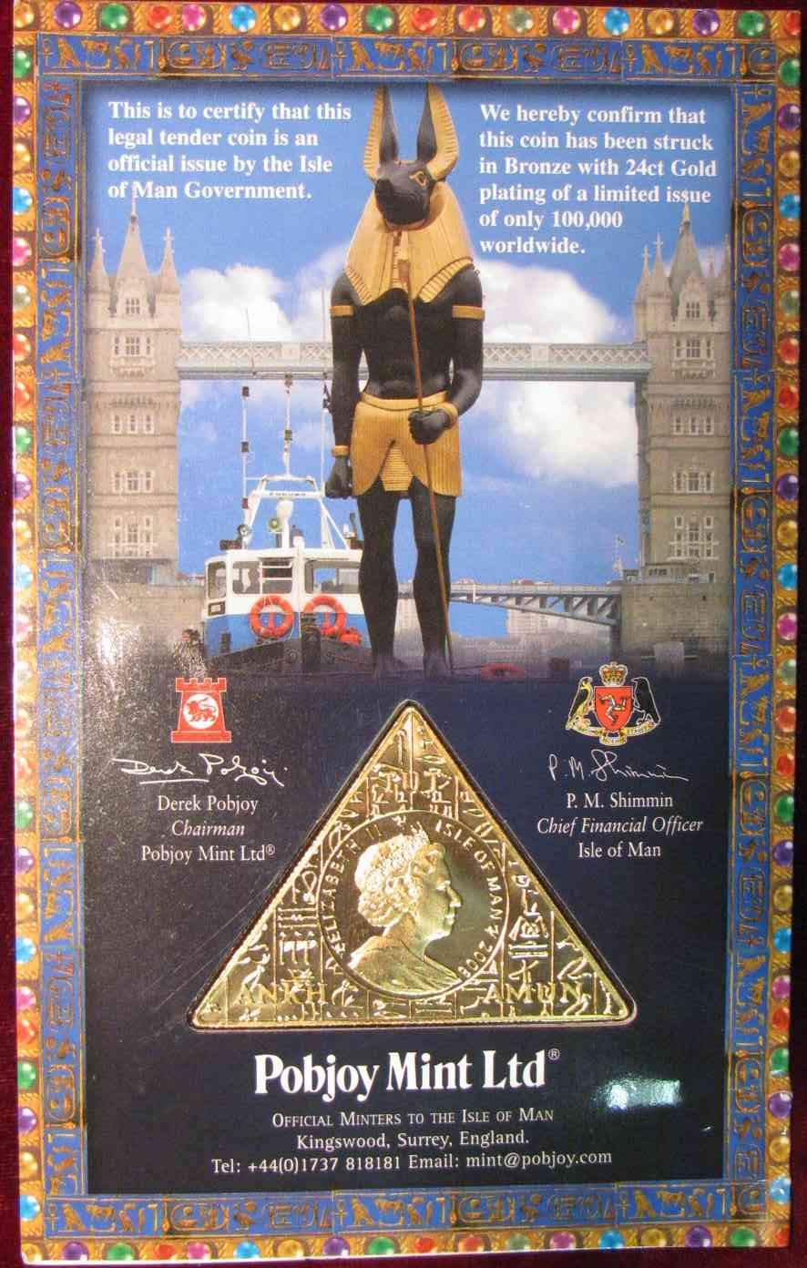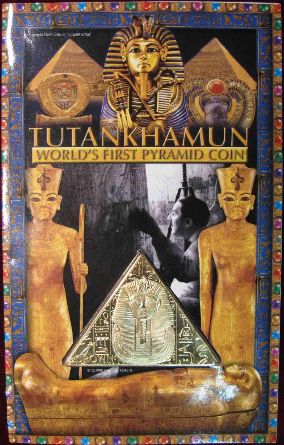 548. 2008 Isle of Man Tutankhamun World's First Pyramid Crown in holder. Limited edition of 100,000 struck in bronze with 24ct Gold Plating.