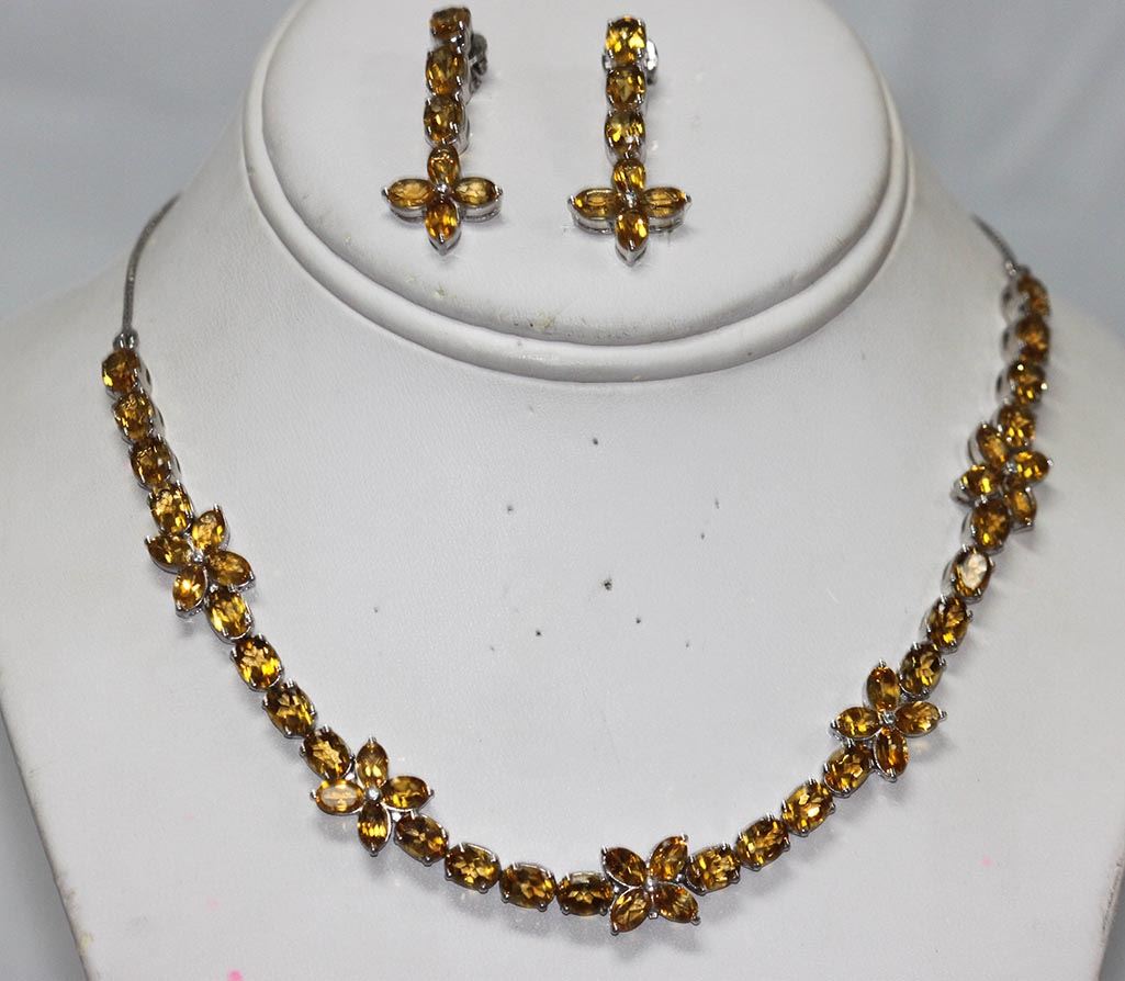 55.00 CTW CITRINE .925 STERLING SILVER NECKLACE/EARRING **|**|** 55.00 CTW CITRINE .925 STERLING SILVER NECKLACE/EARRINGS SET; TOTAL STONE WEIGHT 55.00 CTW