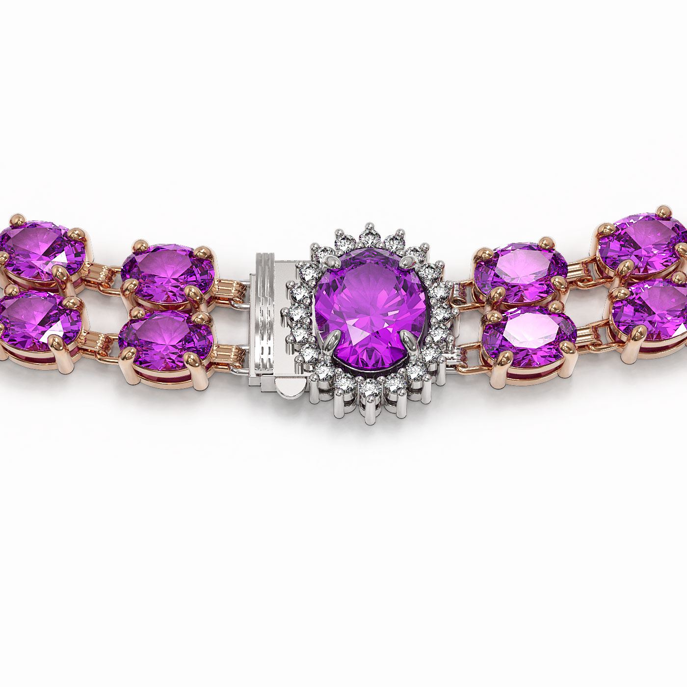 REF-581A8N - SKU: 44379 ---- 55.03 ctw Amethyst & Diamond Necklace 14K Rose Gold