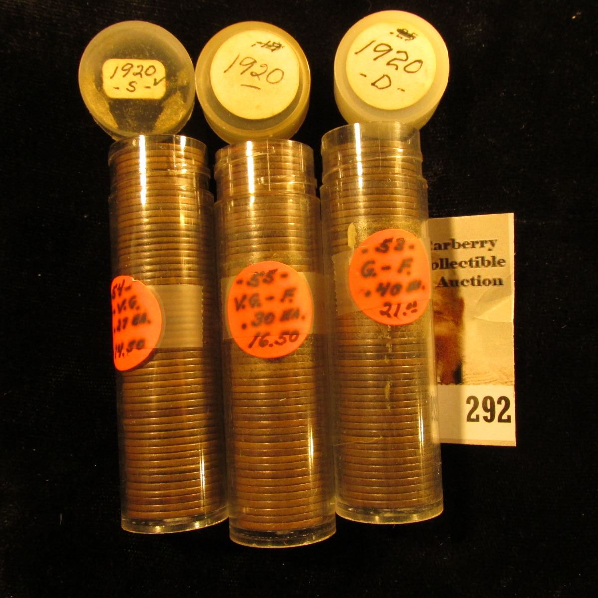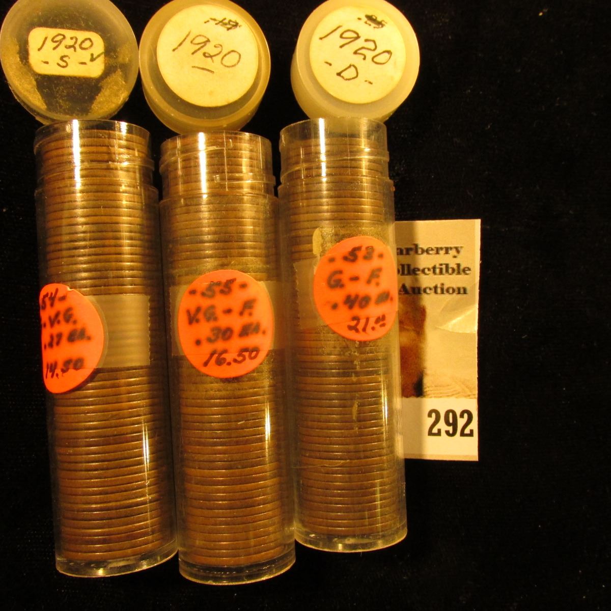 (55) 1920 P, (53) 1920 D, & (54) 1920 S U.S. Lincoln Cents in a plastic coin tubes.