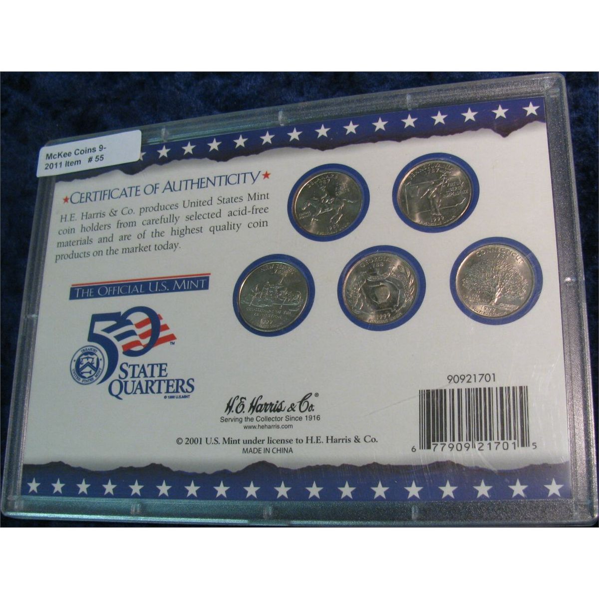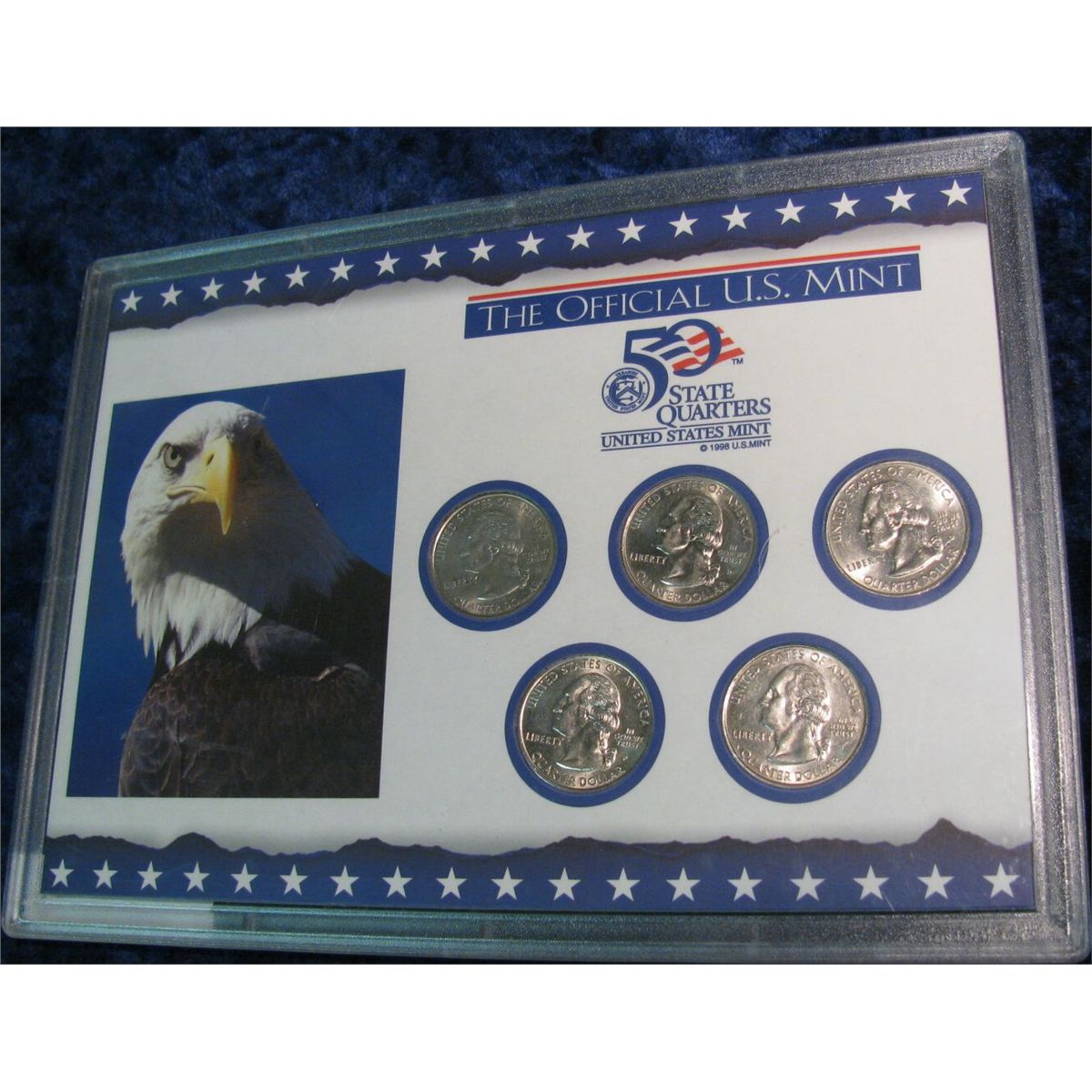 55. 1999 Statehood Quarter Collection in hard plastic Harris case. BU. Five-piece.