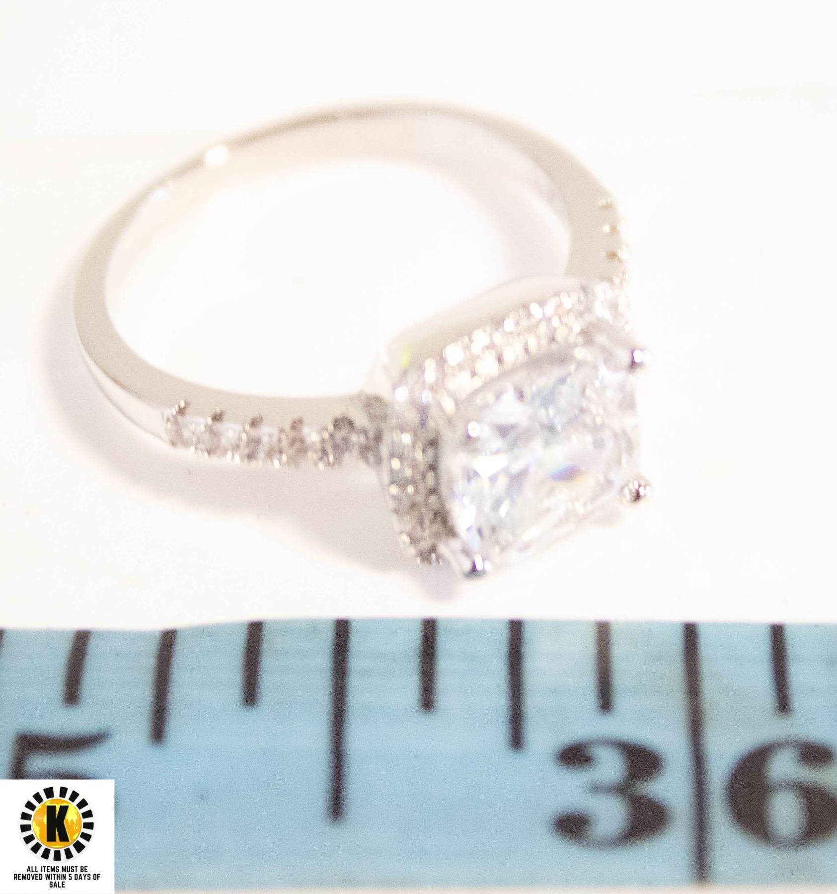 STONE HALO WITH CLEAR STONE ACCENTS IN SHANK RING SIZE 7.75
