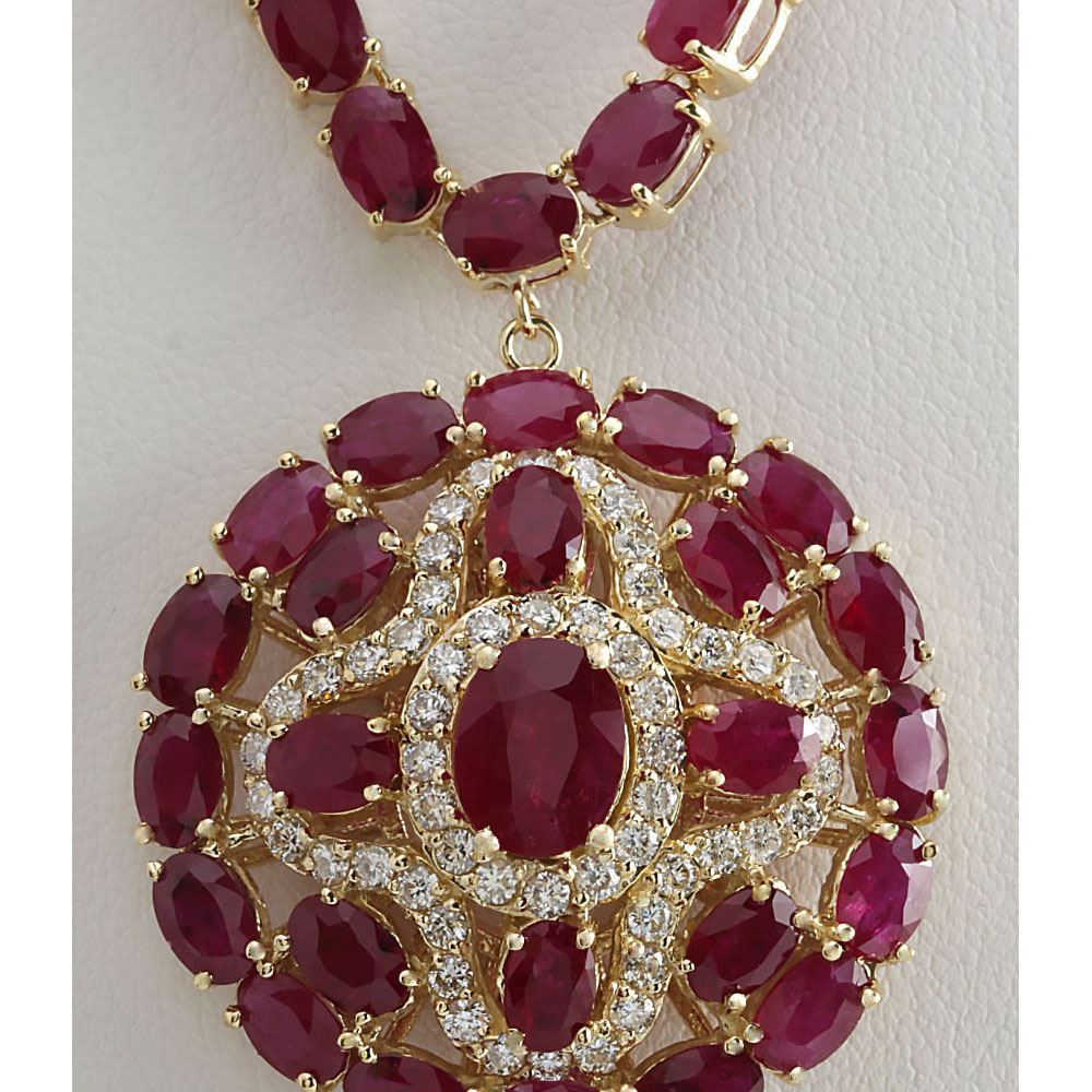 55.35 CTW Natural Ruby And Diamond Necklace In 18K Yellow Gold