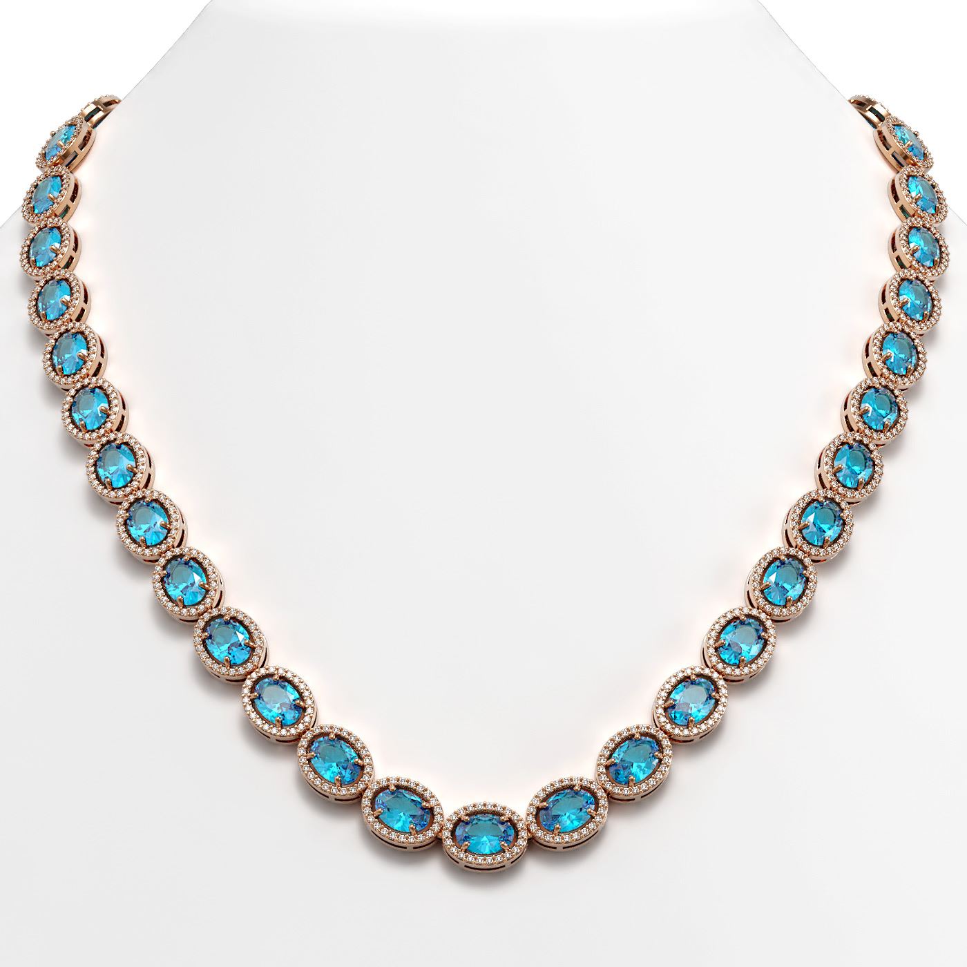 REF-681W8H - SKU: 40587 ---- 55.41 ctw Swiss Topaz & Diamond Micro Pave Halo Necklace 10k Rose Gold