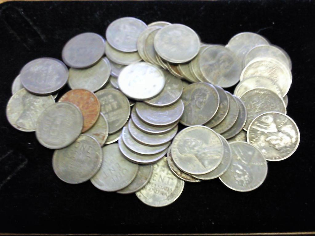 55 ASSORTED 1943 STEEL WARTIME LINCOLN CENTS