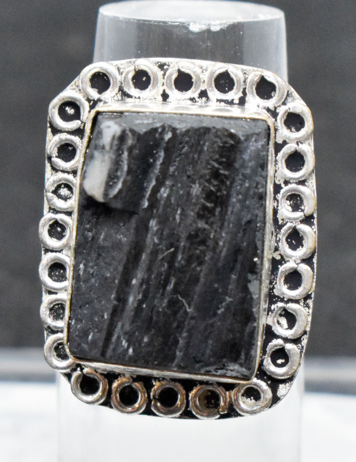 #55-NATURAL BLACK TOURMALINE (RAW) RING SIZE 7.5