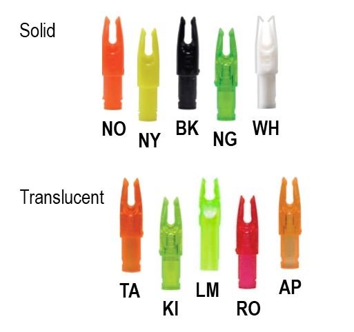 55 x Bohning Signature Nocks .244 - 12 pk, 4-Tangerine, 5-Kiwi, 5-Neon Orange, 5-Neon Yellow, 6-Black, 6-Neon Green, 6-Lime, 6-Rose, 6-Apricot, 6-White