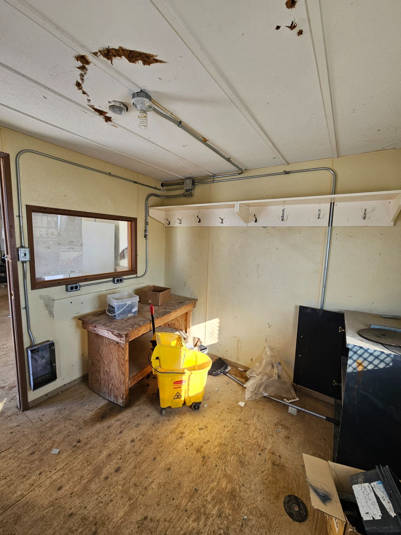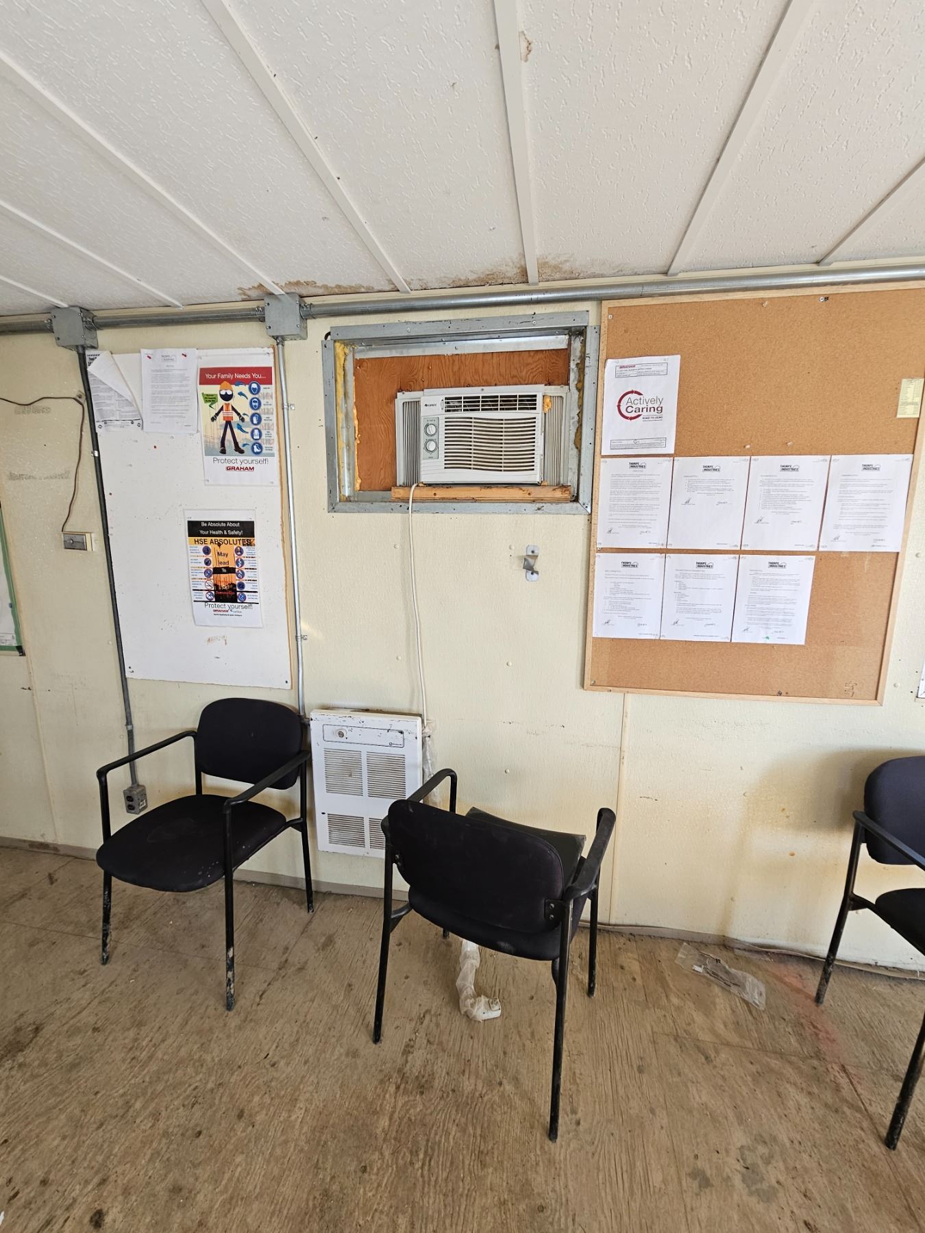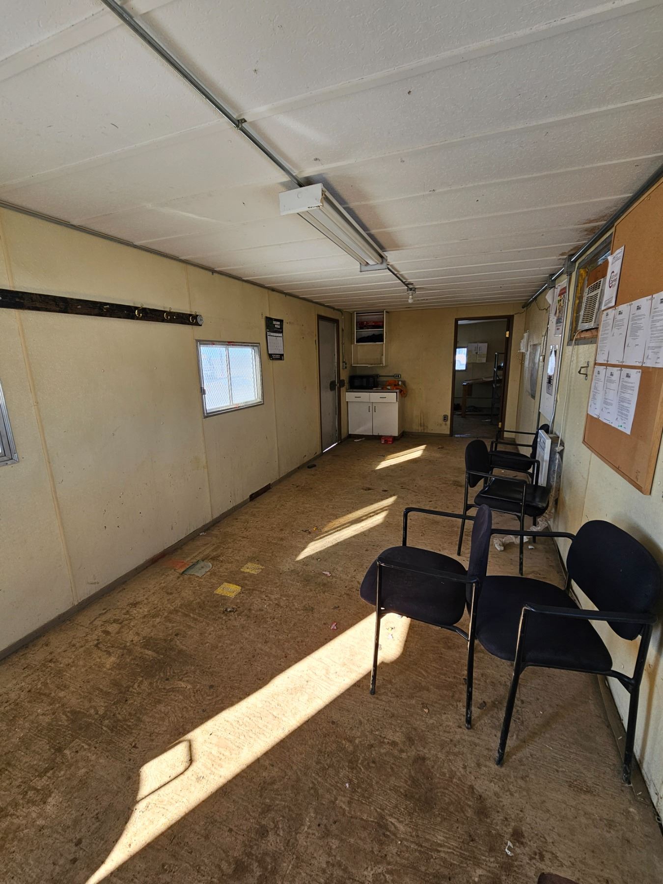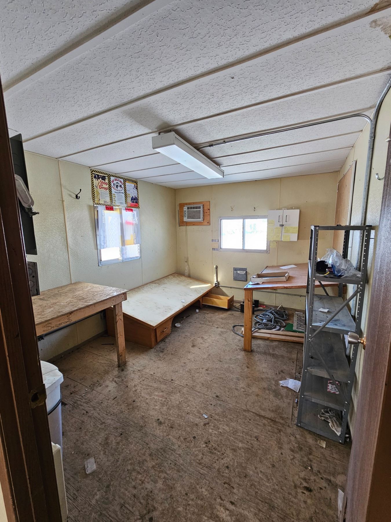 2 A/Cs, Windows, 2 Entrances, Exterior Lights, Power Hookup, Gas line hookup, 3 Wall heaters, Main fuse panel.