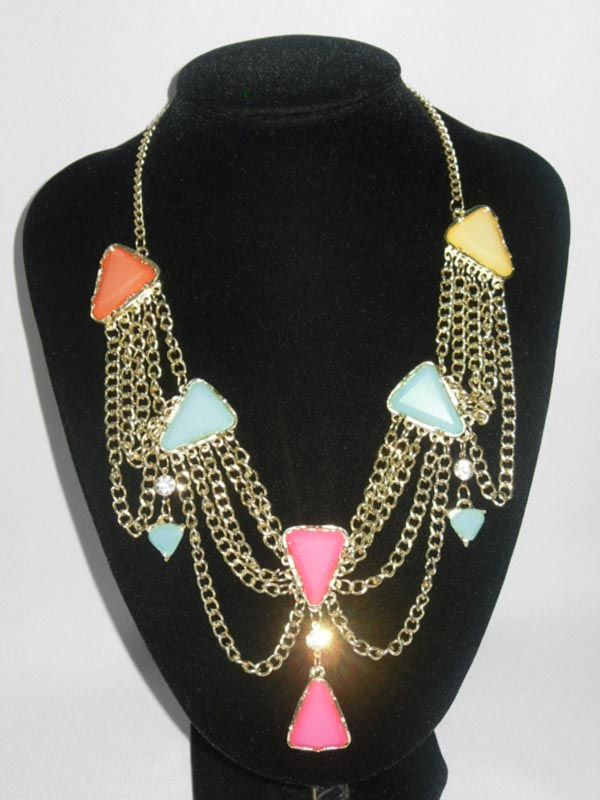 550CTW MULTI-COLOR CURTAIN BRASS NECKLACE; 18INCH **|**|** 550CTW MULTI-COLOR CURTAIN BRASS NECKLACE; 18INCH ; MSRP: $320