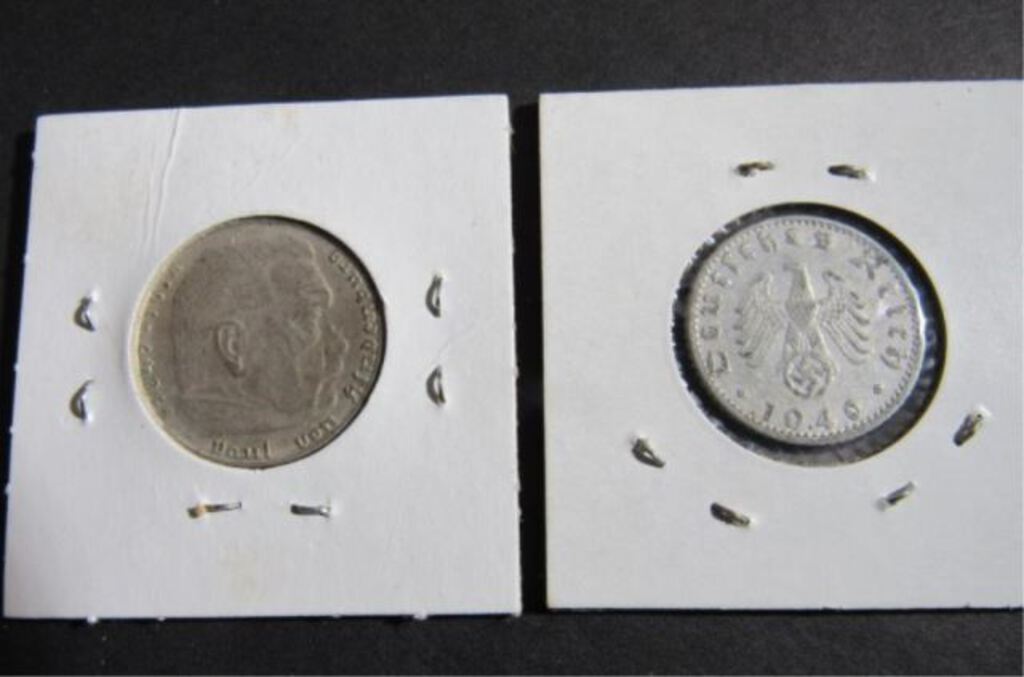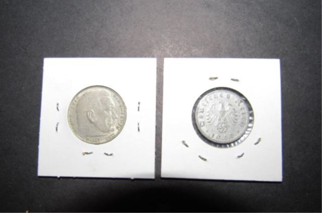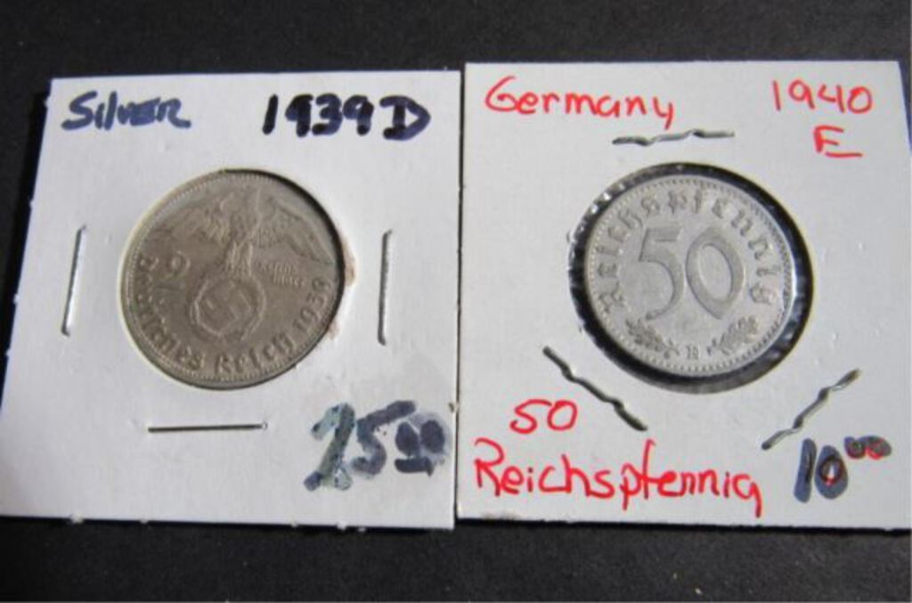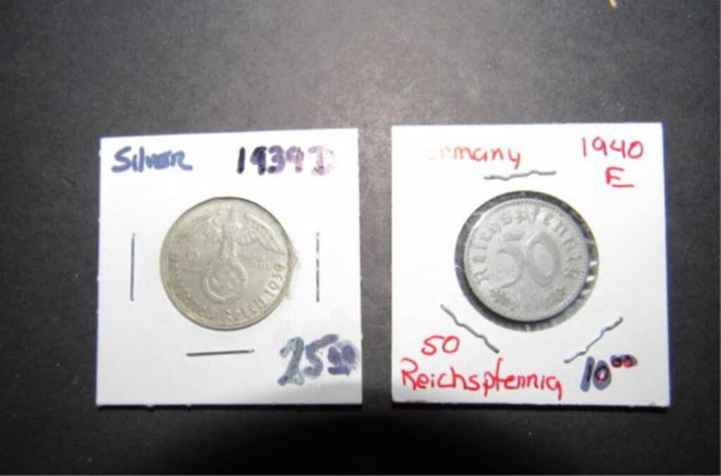 1939-D Germany Third Reich 2 Marks Silver Coin; 1940 Germany 50 Reichspfennig (Aluminum)