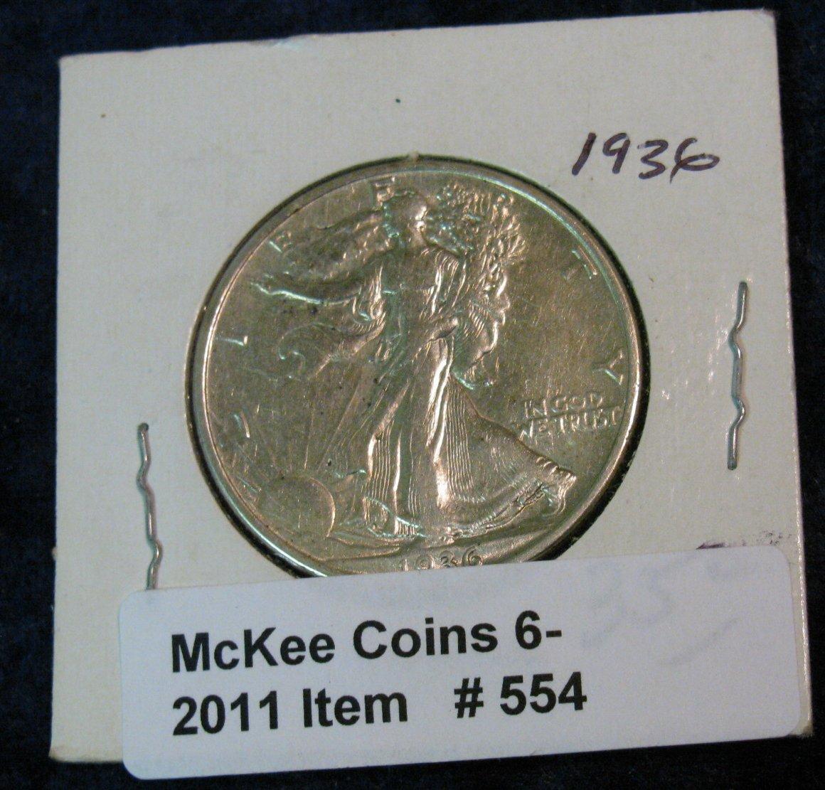 554. 1936 P Walking Liberty Half Dollar. F-12.