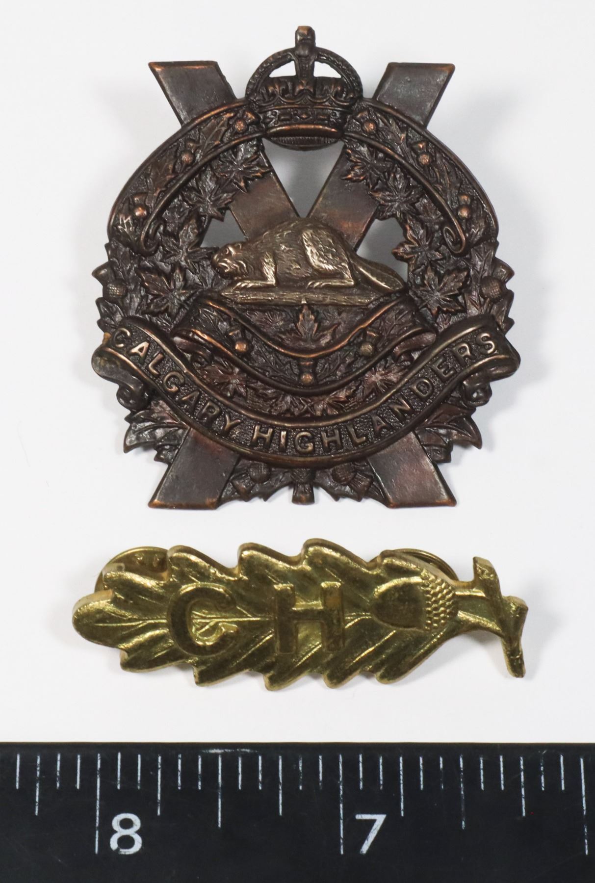 CALGARY HIGHLANDERS COLLAR BADGE WITH PIN BACKING VARIATION DATE UNKNOWN CANADIAN CANADA MILITARY INSIGNIA