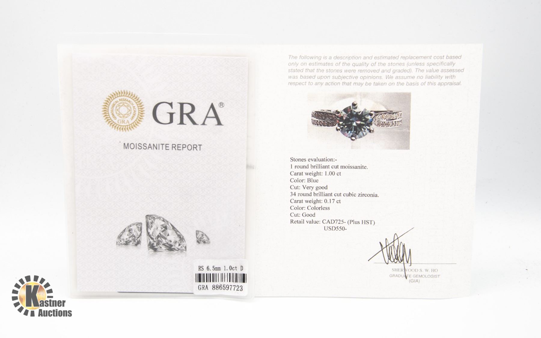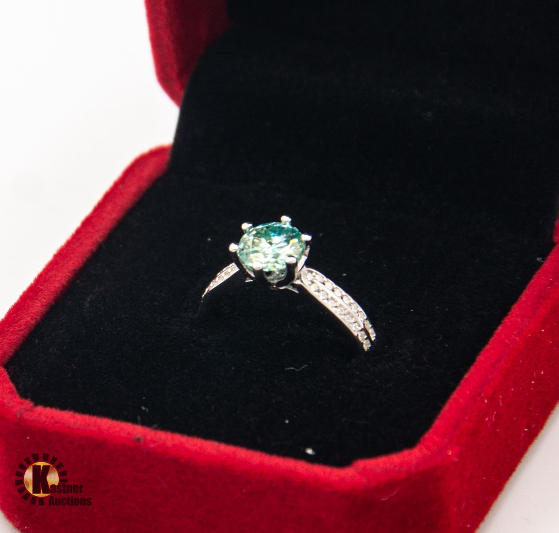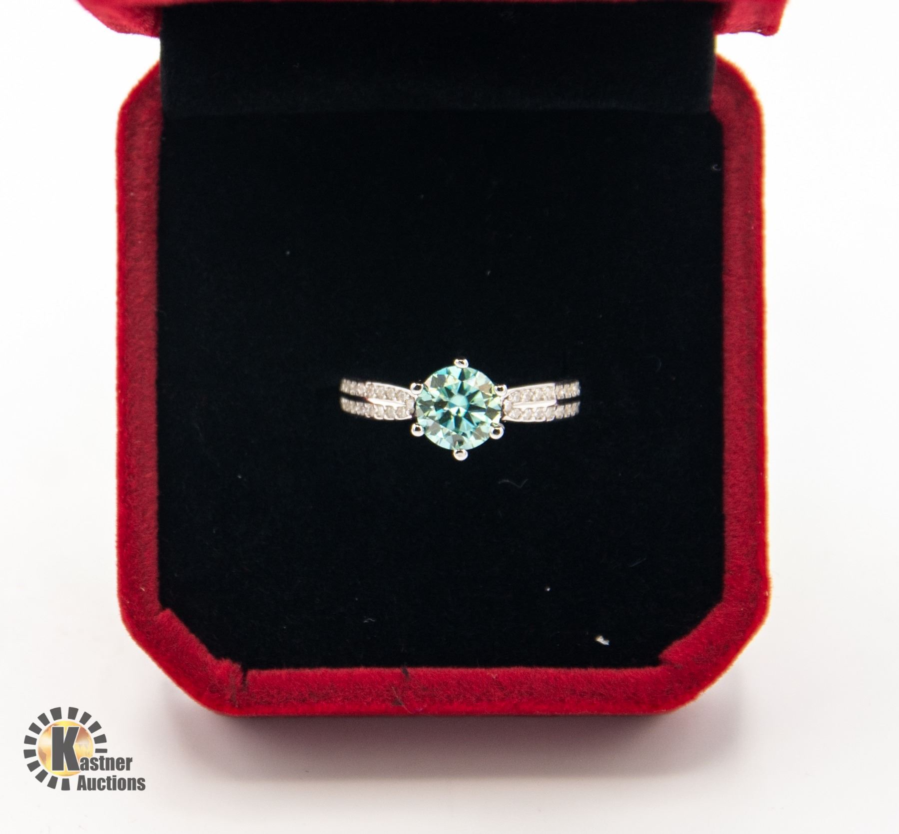 MOISSANITE STONE VVS BLUE COLOR SET IN CENTER IN 925 SILVER RING SIZE 5.25 RETAIL VALUE $725.00 **ALL ITEMS MUST BE REMOVED BY 5PM SATURDAY, SEPTEMBER 7th 2024. ALL REMAINING ITEMS WILL BE SUBJECT TO A $6.00 PER DAY STORAGE CHARGE. ANY ITEMS REMAINING AFTER MONDAY, SEPTEMBER 23RD 2024 WILL BE CONSIDERED FORFEITED. NO REFUNDS WILL BE ISSUED FOR FORFEITED ITEMS. TO SCHEDULE A PICK UP APPOINTMENT CLICK HERE