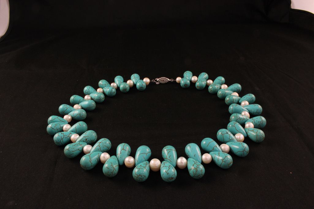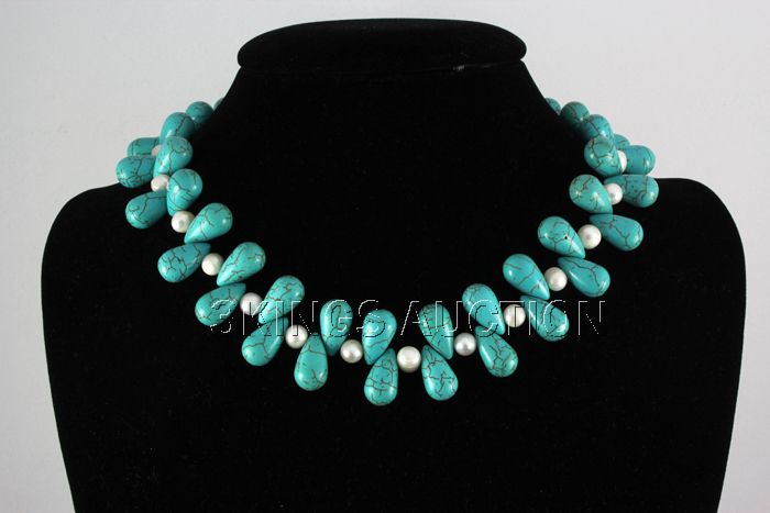 556.79CTW 16" BLUEGREEN FRESHWATER PEARL WITH TURQUISE **|**|** 556.79CTW 16" BLUEGREEN FRESHWATER PEARL WITH TURQUISE NECKLACE METAL LOCK PHILIPPINES ; MSRP: $200