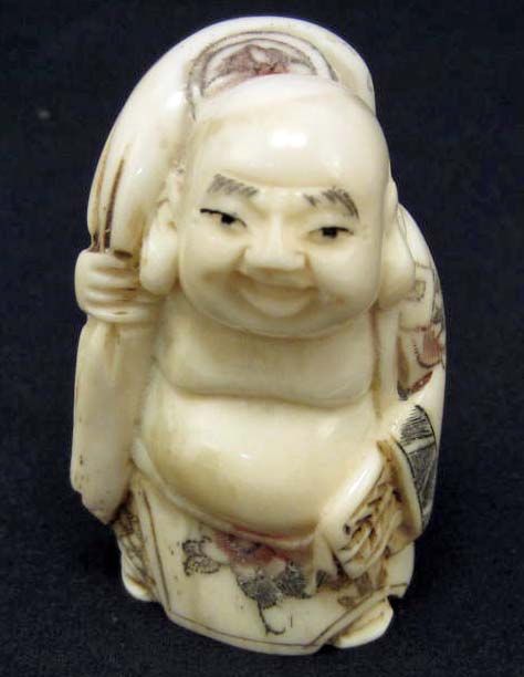 5566 - JAPANESE BONE NETSUKE HAPPY BUDDHA