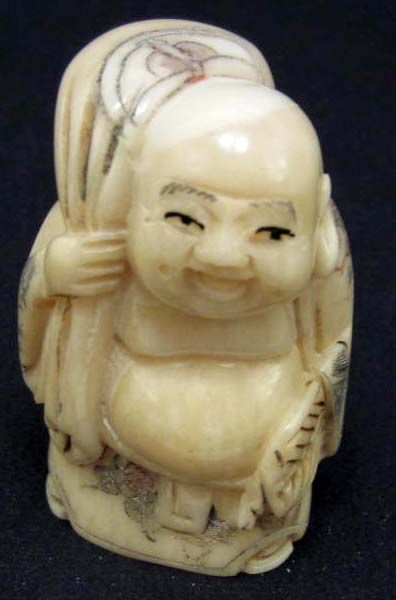 5567 -  JAPANESE BONE NETSUKE HAPPY BUDDHA