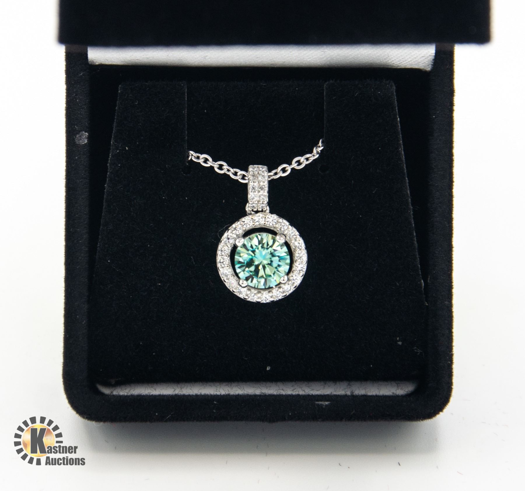 MOISSANITE STONE VVS FANCY BLUE COLOR SET IN CENTER IN 925 SILVER PENDANT RETAIL VALUE $650.00 **ALL ITEMS MUST BE REMOVED BY 5PM SATURDAY, SEPTEMBER 7th 2024. ALL REMAINING ITEMS WILL BE SUBJECT TO A $6.00 PER DAY STORAGE CHARGE. ANY ITEMS REMAINING AFTER MONDAY, SEPTEMBER 23RD 2024 WILL BE CONSIDERED FORFEITED. NO REFUNDS WILL BE ISSUED FOR FORFEITED ITEMS. TO SCHEDULE A PICK UP APPOINTMENT CLICK HERE