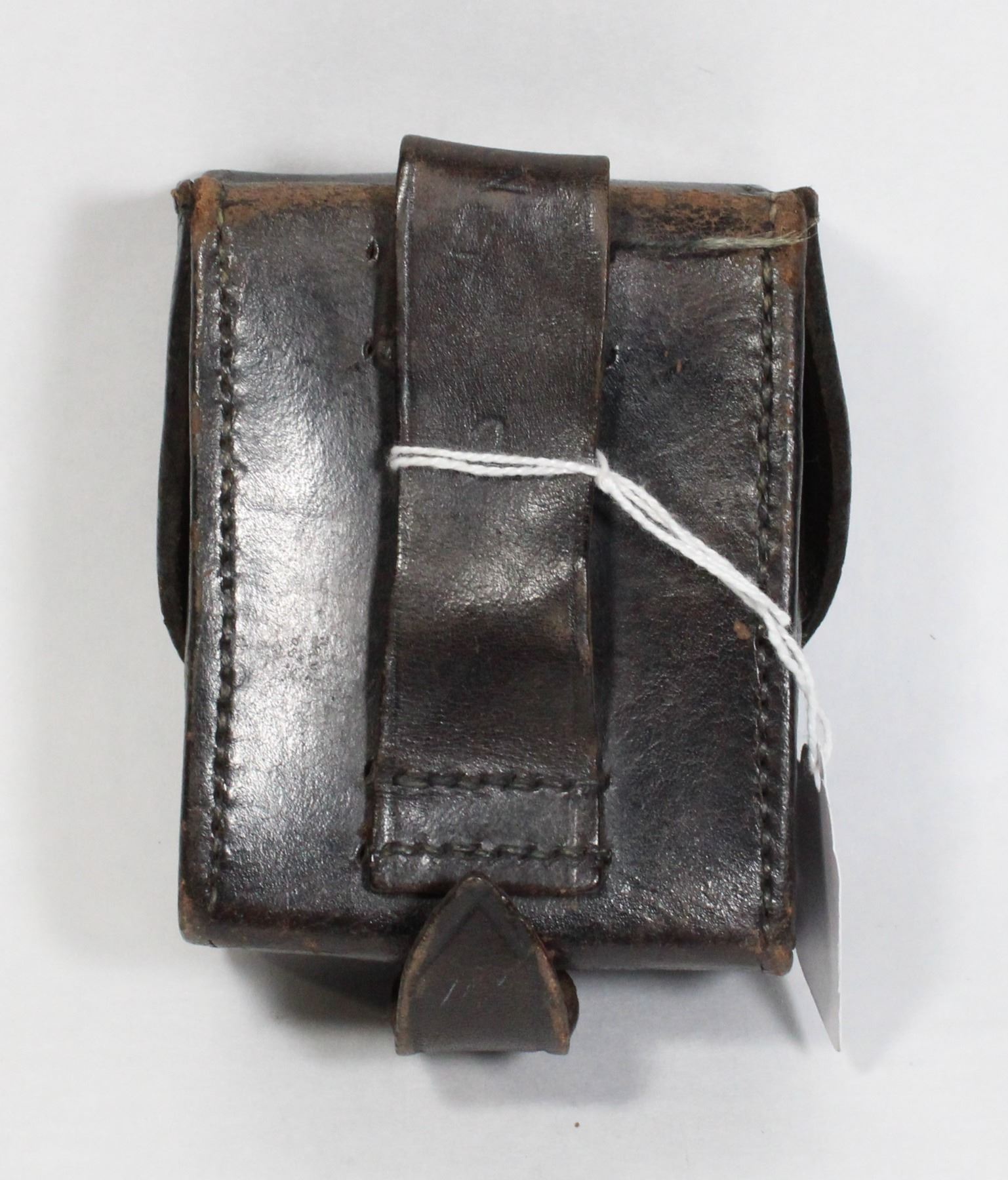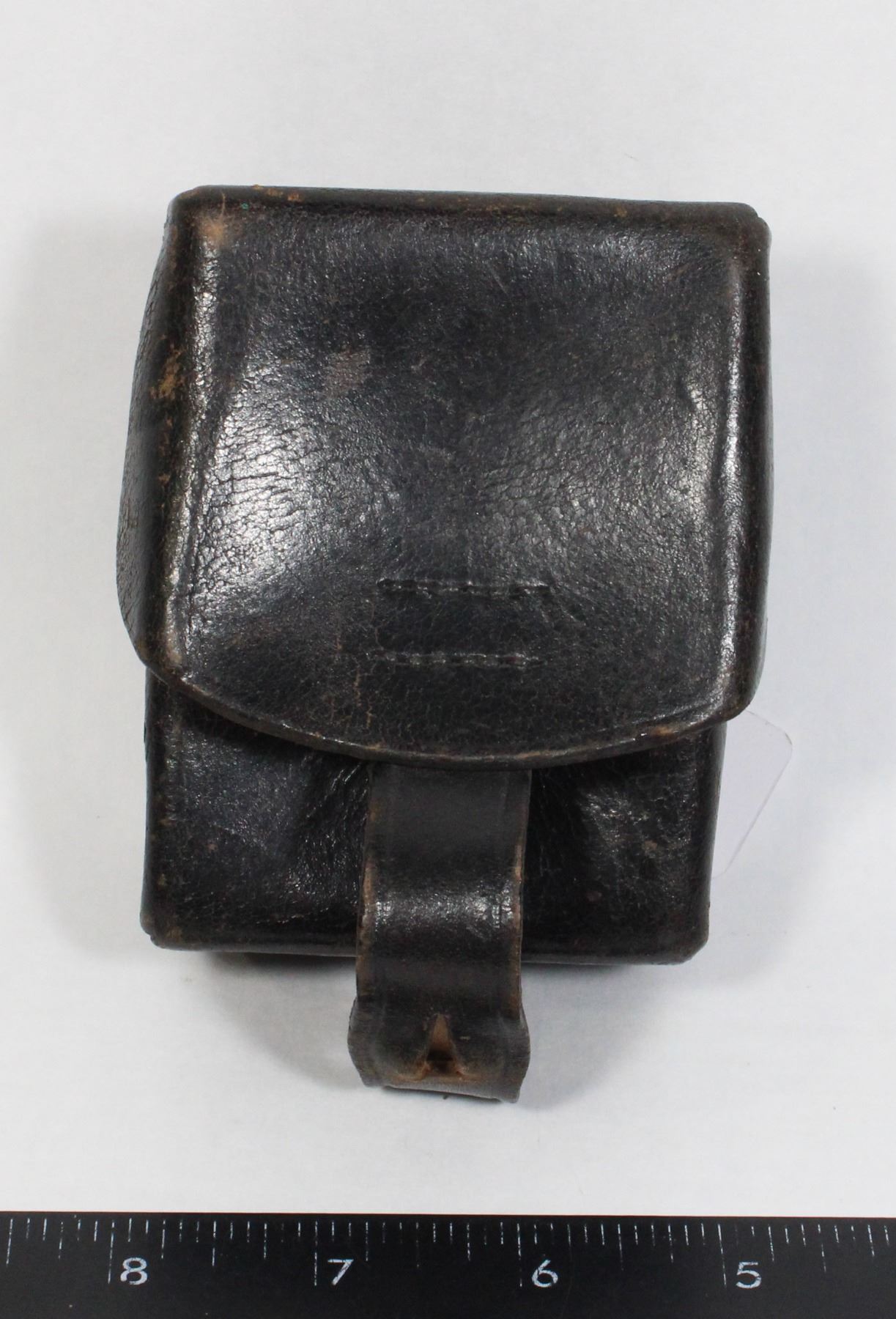LEATHER POUCH FOR AMMUNITION- FITS ON BELT.