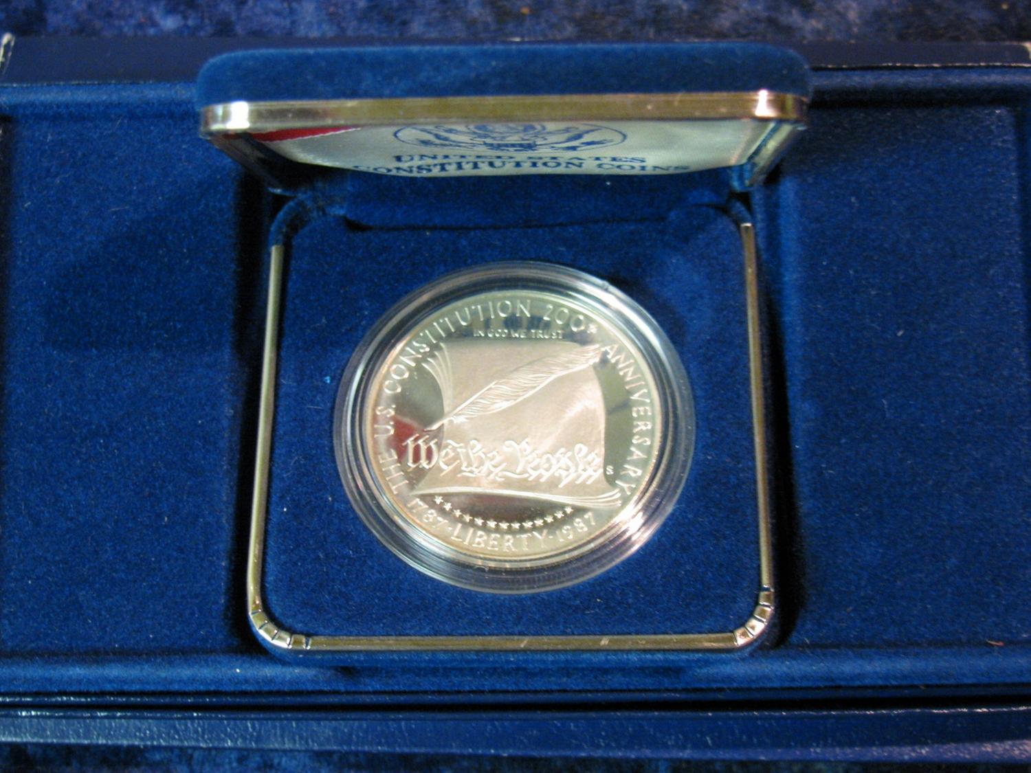 558. 1987 S U.S. Constitution Proof Silver Dollar in Original Box of issue.