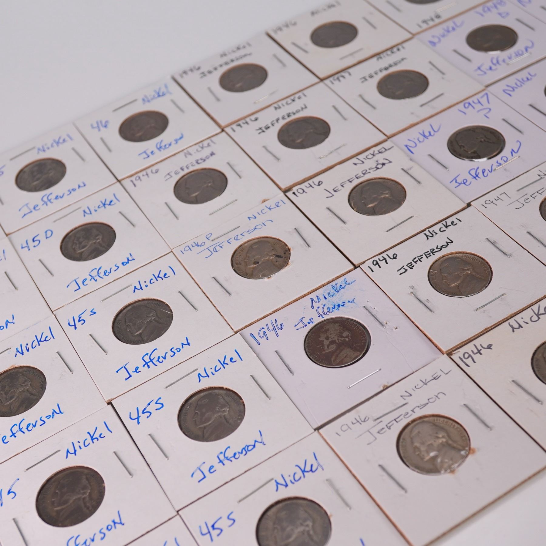 55pc Jefferson Nickels 1940s Mixed Mintmarks Coins