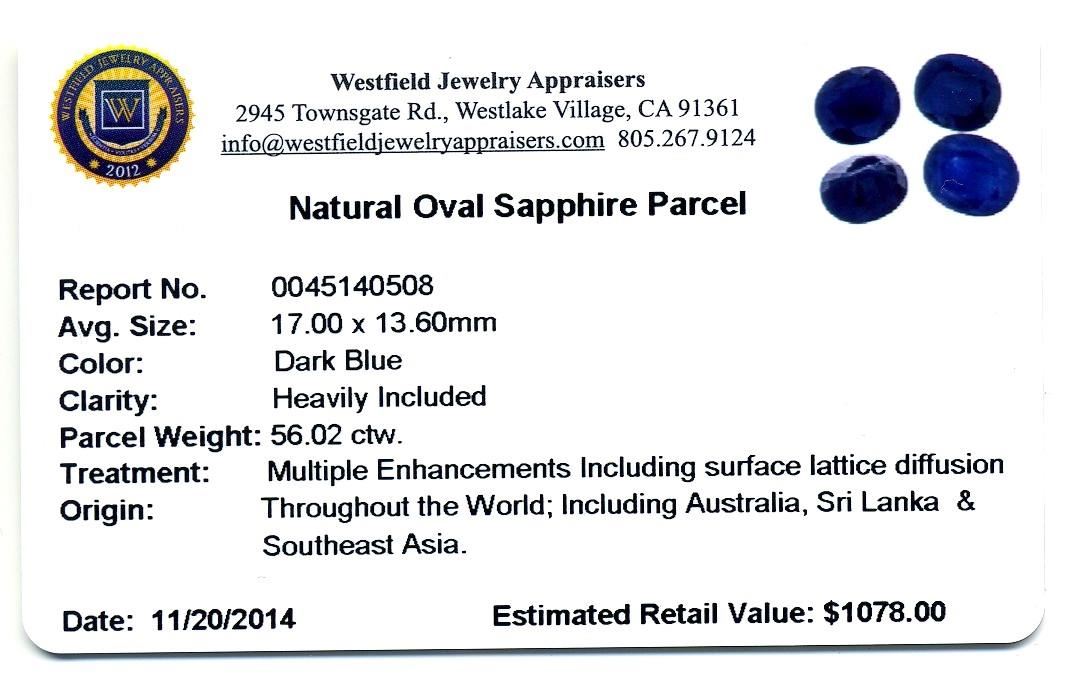 56.02ctw. Natural Oval Sapphire Parcel. Westfield Appraised at $1,078.00.