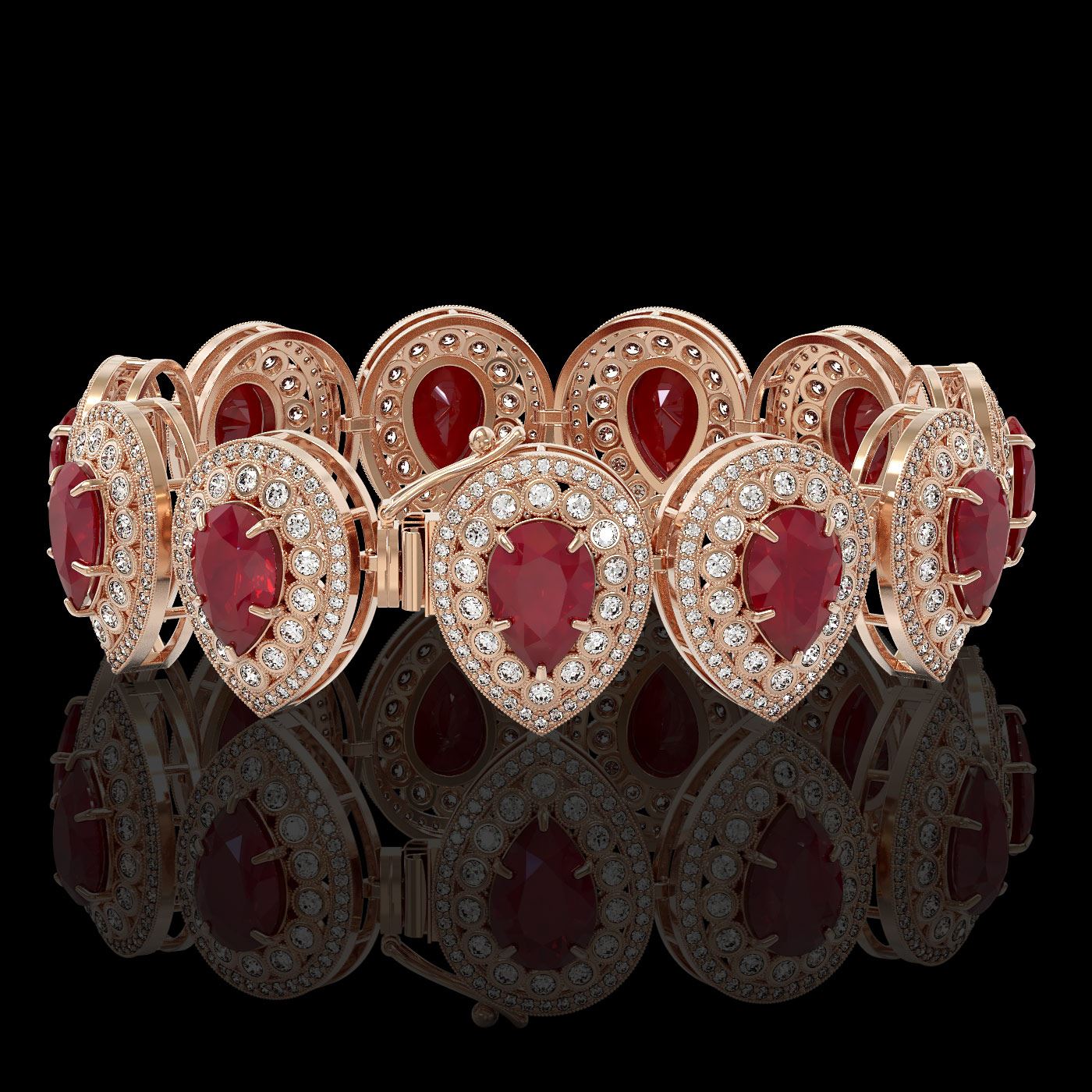 REF-1520F8M - SKU: 43257 ---- 56.04 ctw Certified Ruby & Diamond Victorian Bracelet 14K Rose Gold