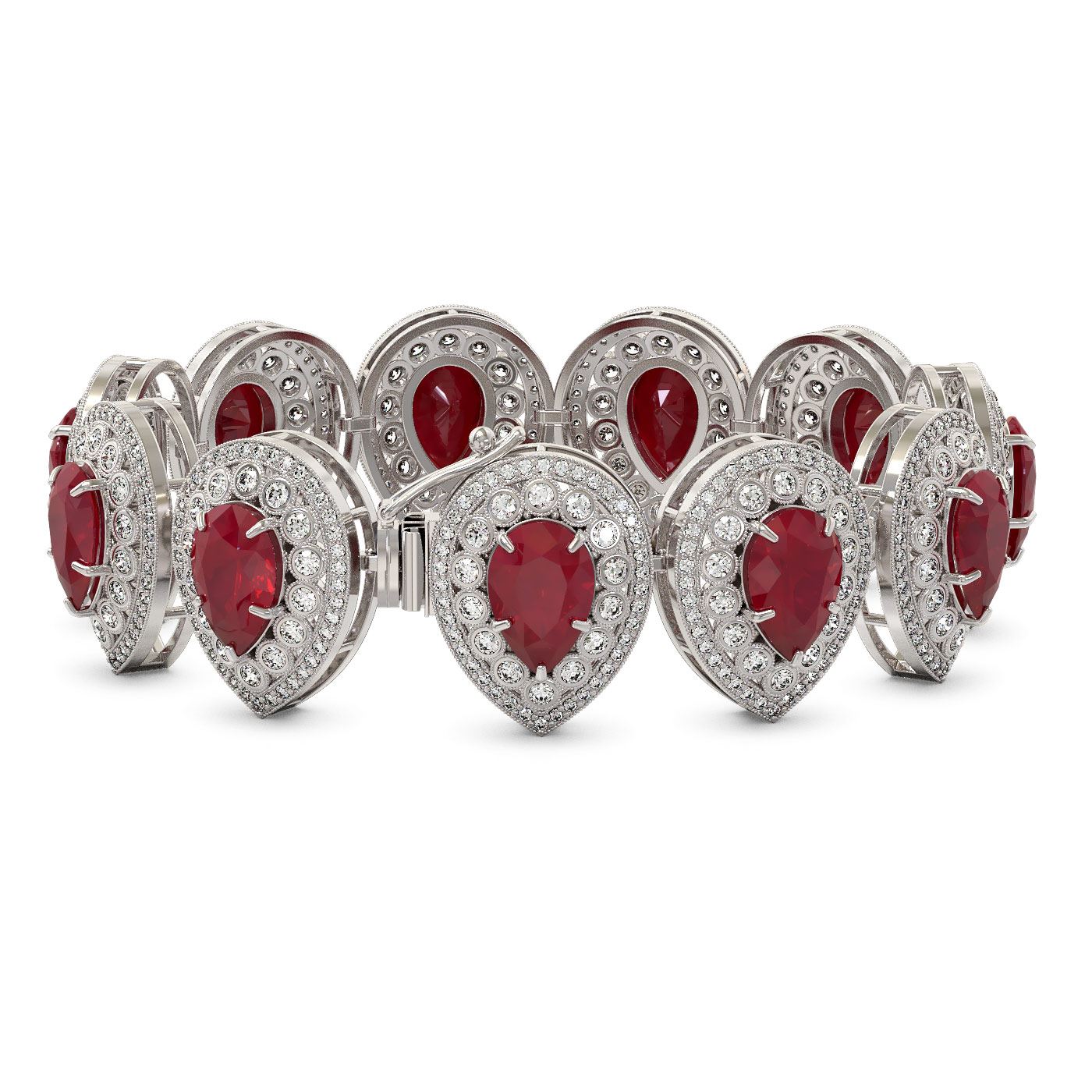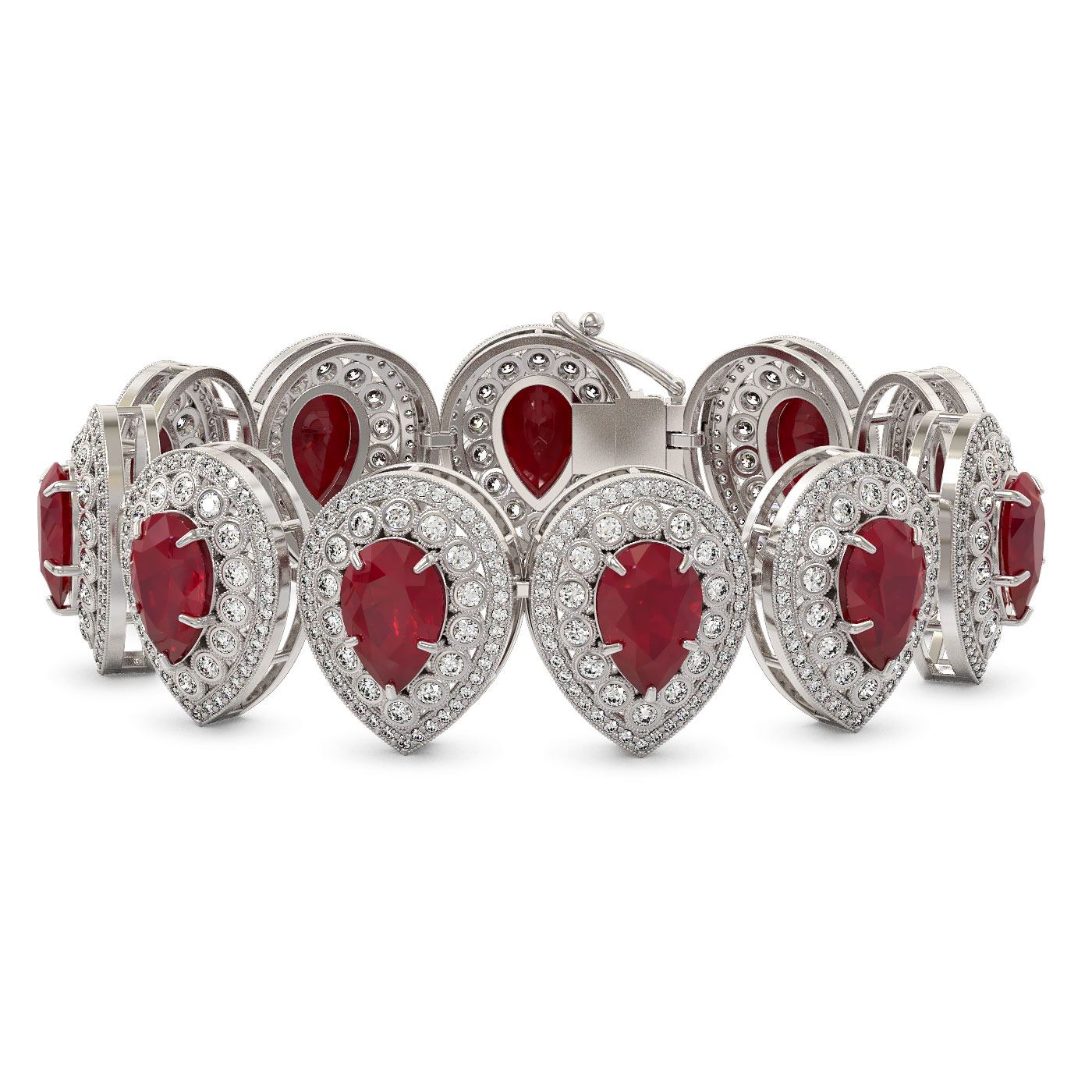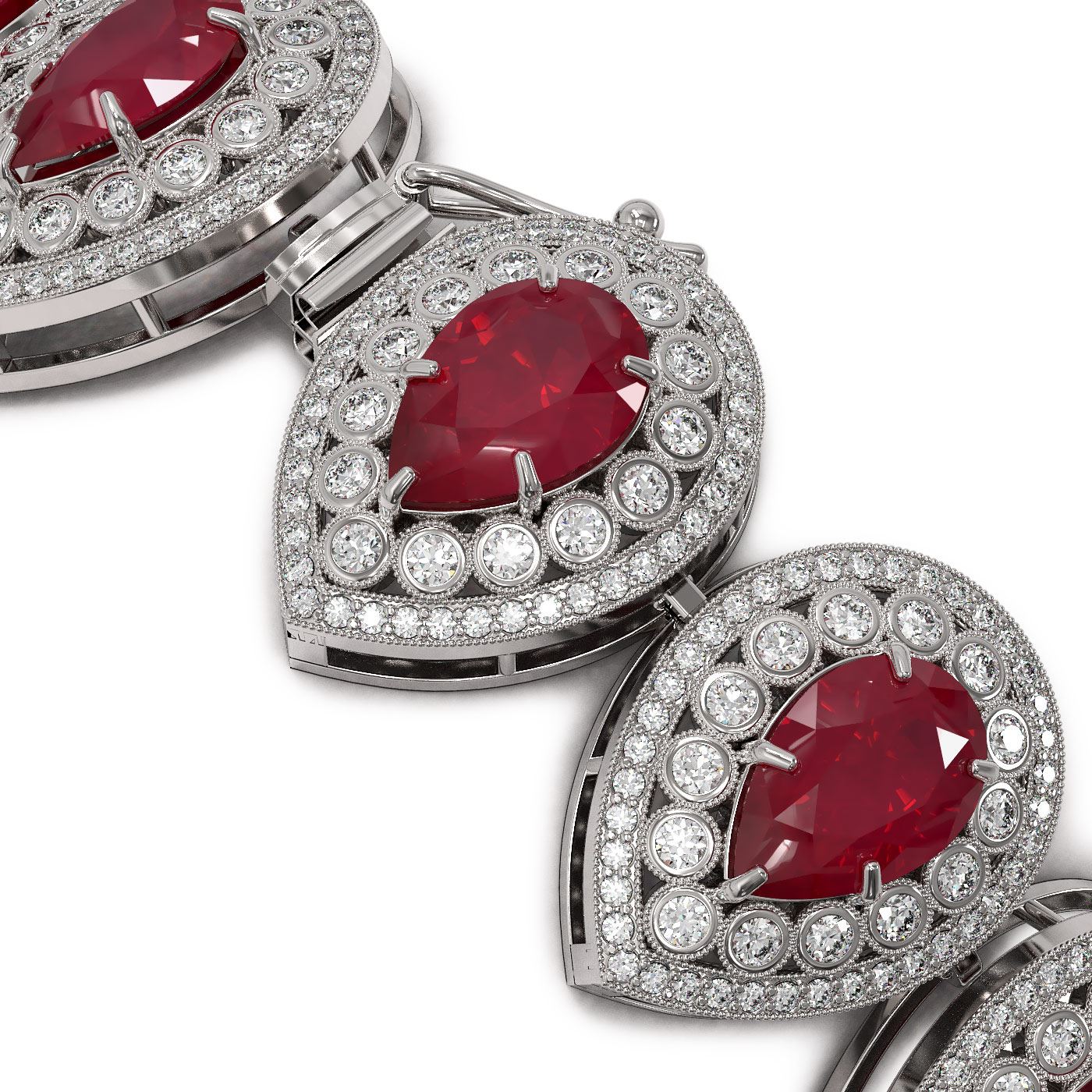 SKU: 43256 ---- 56.04 ctw Certified Ruby & Diamond Victorian Bracelet 14K White Gold