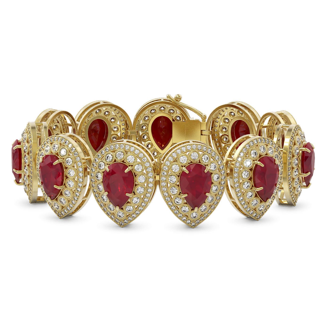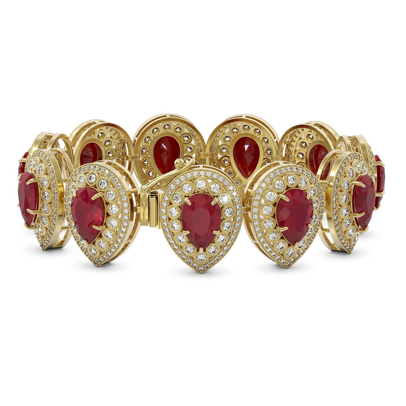 SKU: 43258 ---- 56.04 ctw Certified Ruby & Diamond Victorian Bracelet 14K Yellow Gold