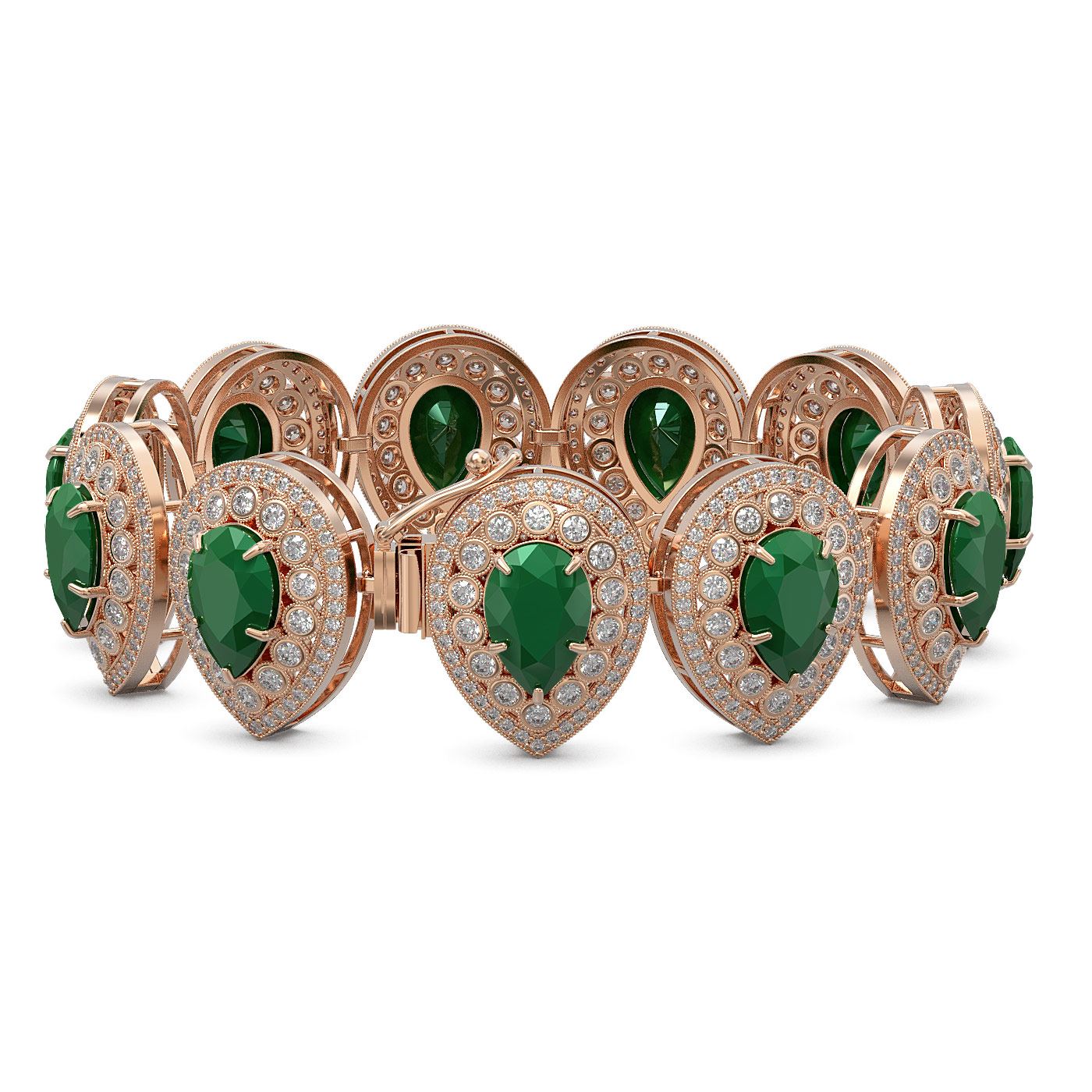 REF-1745W5H - SKU: 43254 ---- 56.04 ctw Emerald & Diamond Victorian Bracelet 14K Rose Gold