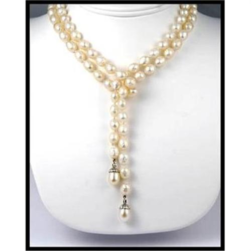 This beautiful and lovely pearl strand is strung with 125 pieces of white faceted fresh water pearls. It has two 14 by 9 millimeter drop pearls hanging on each end and a 0.07carat each diamond bezel set right above each of the hanging drop pearl. A piece you can enjoy wearing as often as you want to.