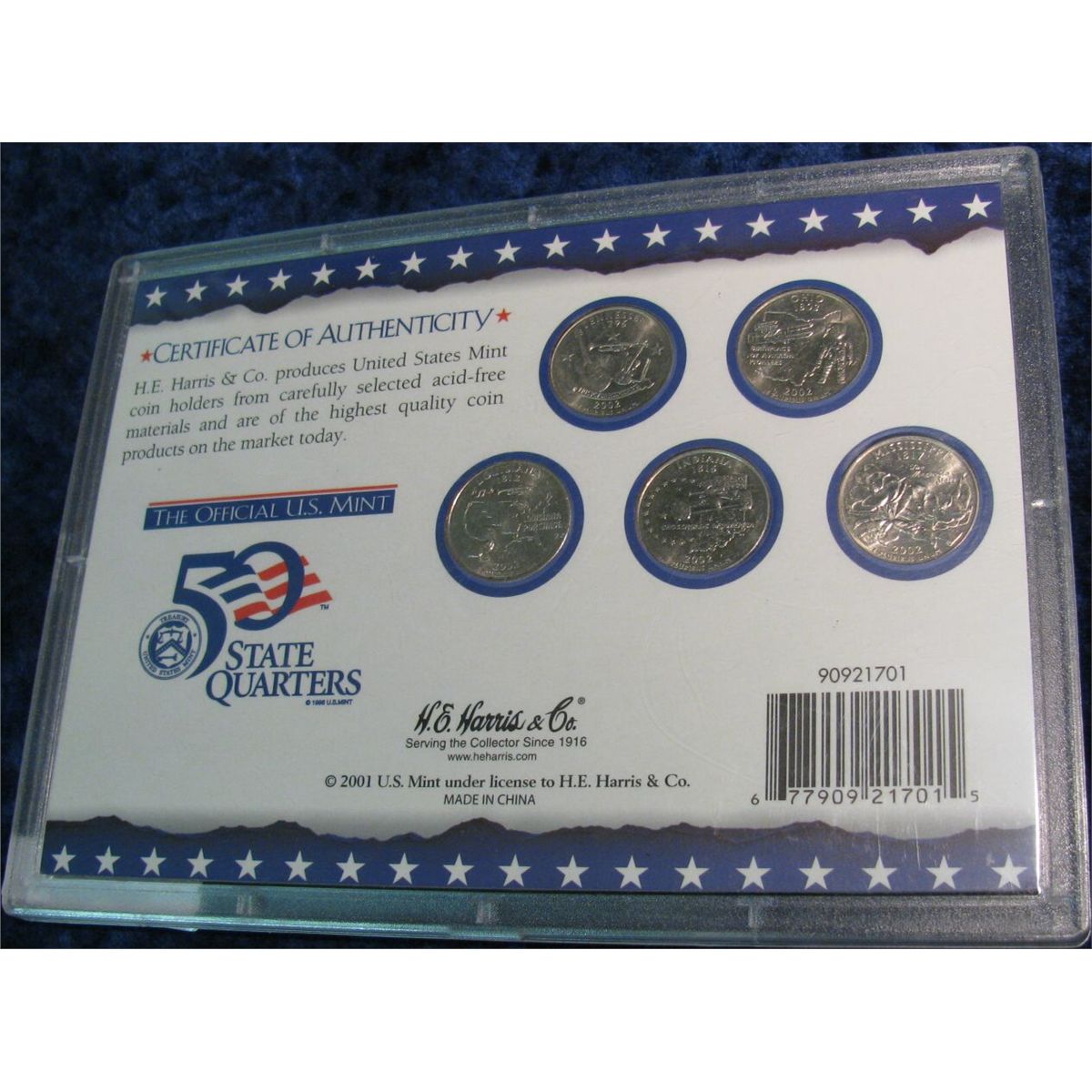 56. 2002 Statehood Quarter Collection in hard plastic Harris case. Five-piece.