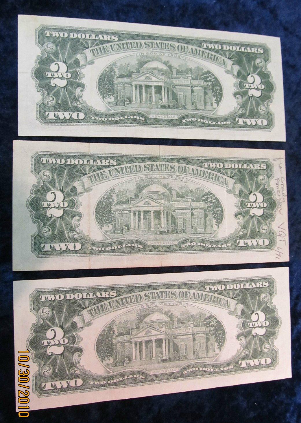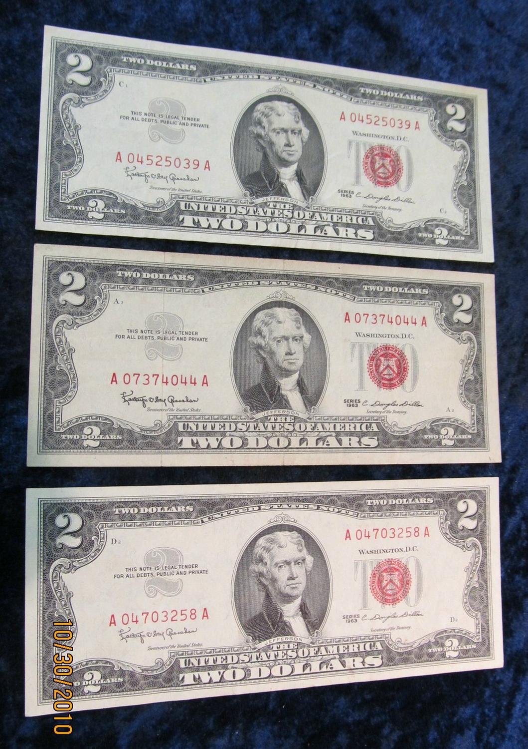 56. (3) Series 1963 $2 U.S. Notes. "Red Seals" AU-Unc.