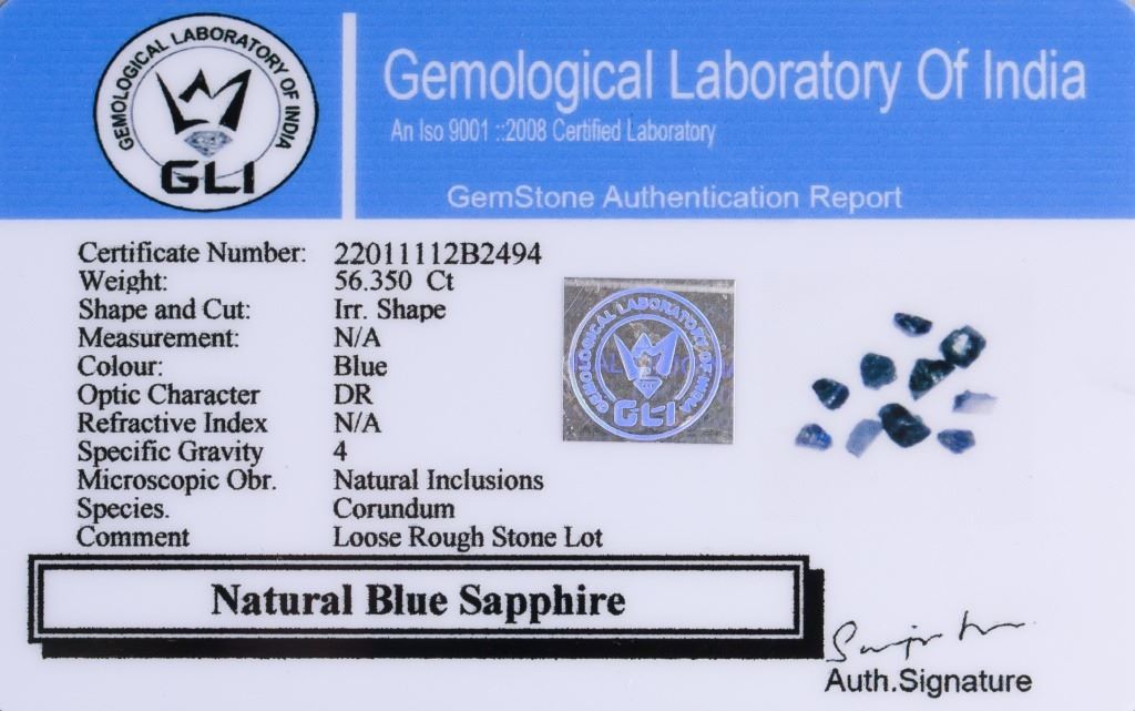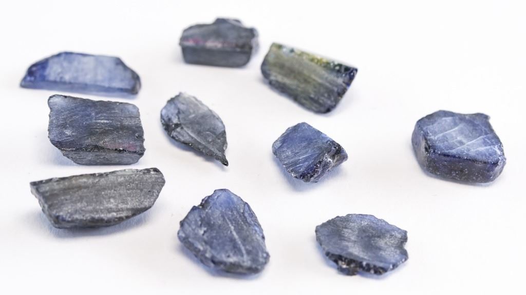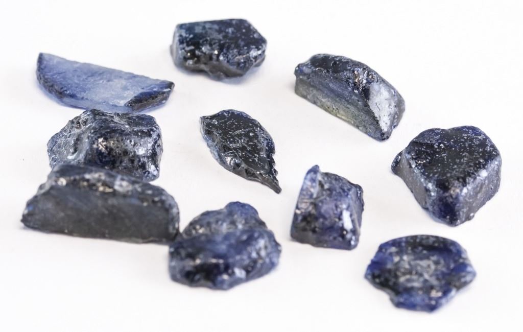Lot of 10 56.35 ct (total) irregular shape rough blue natural sapphire. Accompanied with GLI certificate.