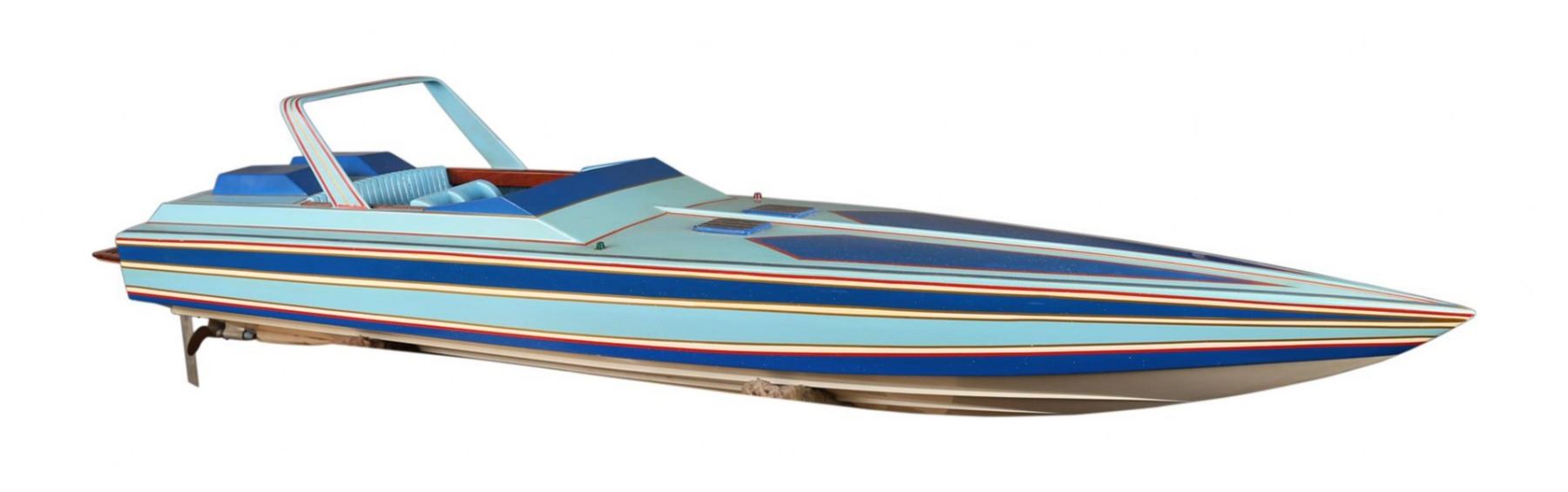 A model off shore race boat built approximately 20 years ago.  Nice Condition - Fully Motorized ETC. Dimensions: 56.5" long x 14.5" wide.