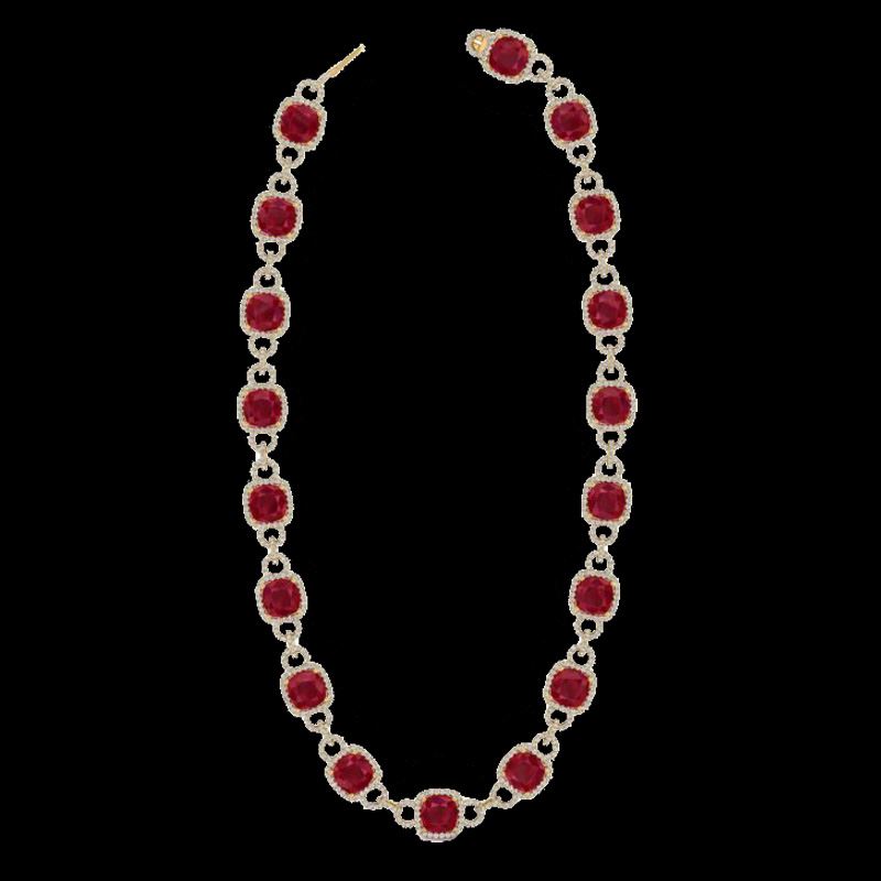REF-1003Y6K -23049 ---- 56 CTW Ruby & Micro VS/SI Diamond Eternity Necklace 14K Yellow Gold ---- Luxury Designer Brand Necklace Appraised at $71,750 Certificate Number US23049  14k Yellow gold,  Necklace Size is 17 Inches, Necklace measuring approx. 7/16"X7/16" , weighing in total approx. 40 grams. Made in the USA and is stamped 14k, Main stone 48 carat total weight containing 18 pieces of Mid-Opaque-Deep Red color with AAA quality Cushion shape cut Ruby , Stone #2 8 carat total weight containing 828 pieces of H-I color with  VS/SI quality Round shape cut Diamond