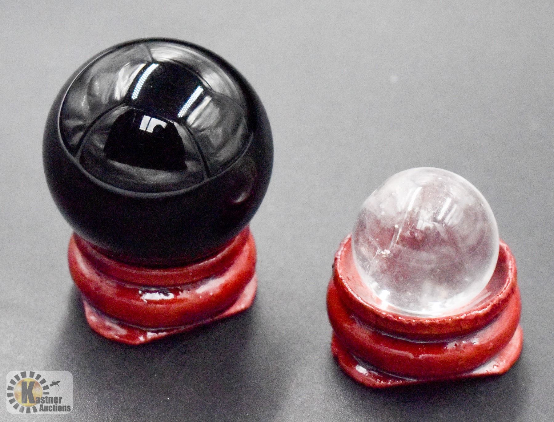 #56-NATURAL BLACK OBSIDIAN ,CLEAR QUARTZ SPHERE BA